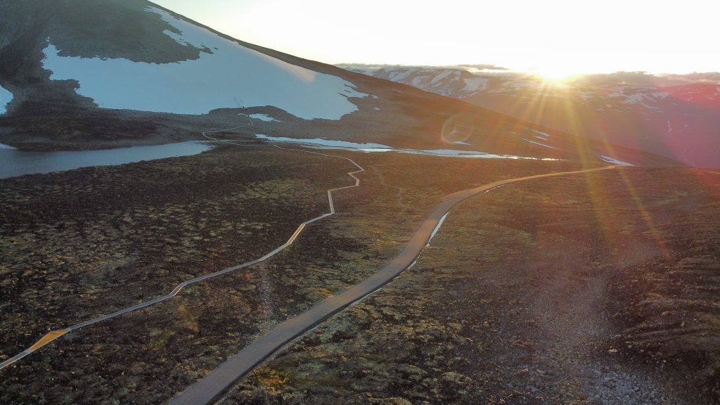 Am Galdhøpiggen – unterhalb des Gipfels findet man den Klimapark 2469 auf 1850 M.ü.M. Im „Park“ lernt man alles über Permafrostböden, das Klima und den Lebensraum in diesen Höhenlalgen. Nach der geführten Tour gelangt man in den Eistunnel welcher im Eisfeld Juvfonne liegt. Die Eisschichten sind bis zu 7000 Jahre alt. Im Eistunnel, welche der nordischen Mythologie gewidmet ist, findet man auch ausgestellte Gletscherfundstücke wie uraltes Werkzeug, Waffen, Skier und Kleidung welche durch die Schneeschmelze in den letzten Jahren freigelegt wurden. Der Tunnel führt Rund 50 Meter tief ins Eis und wurde komplett von Hand gebaut.