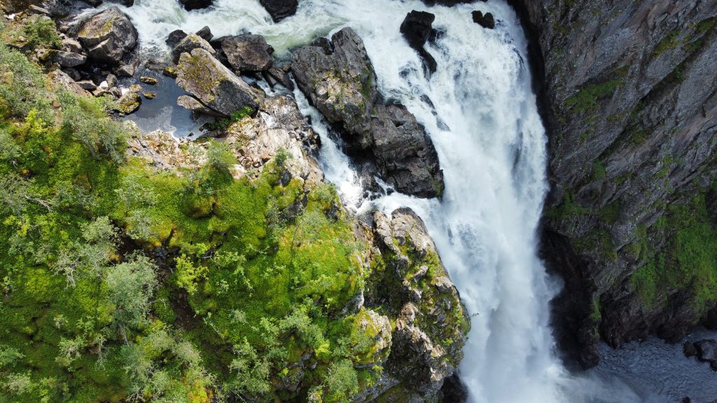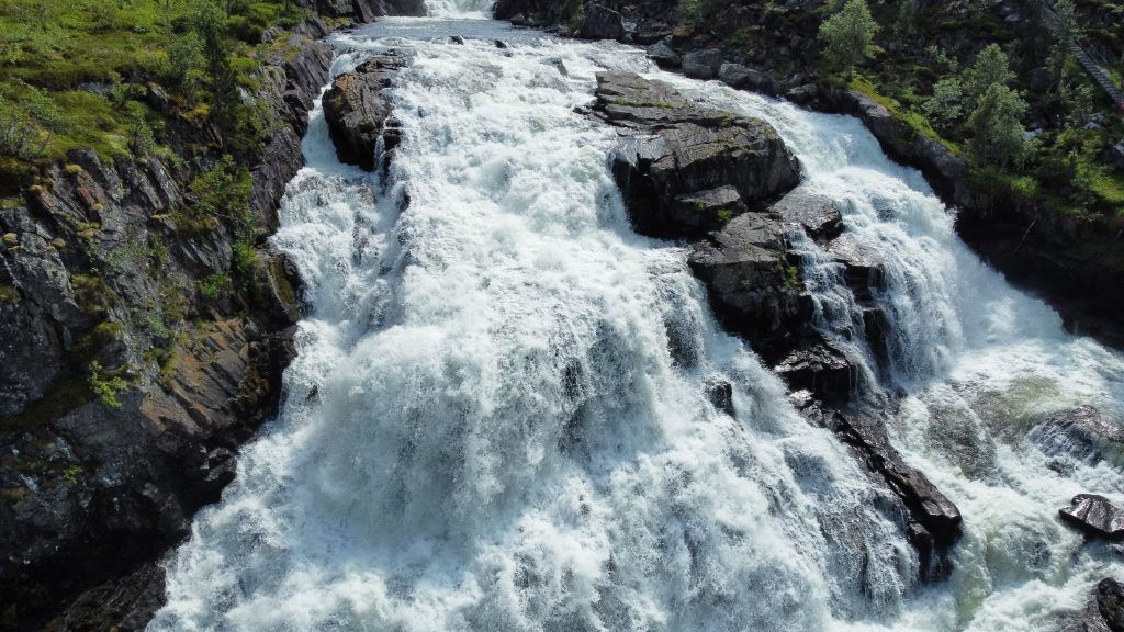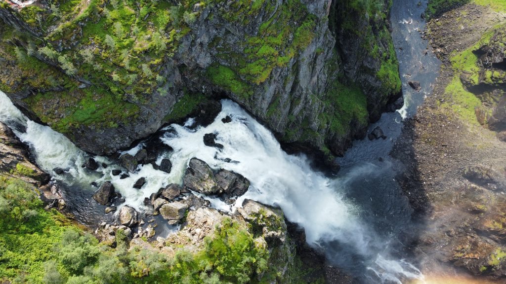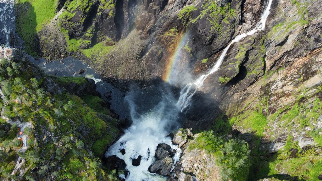 Vøringsfossen ist einer der bekanntesten Wasserfälle in Norwegen. Die Fallhöhe beträgt rund 183 m, die größte Freifallstrecke des Wassers 145 m. Der Wasserfall liegt am Westrand der Hochebene Hardangervidda stürzt das Wasser ins Måbødalen Tal. Die Wassermenge kann zur Schneeschmelze im Frühjahr mehr als 150 Kubikmeter pro Sekunde betragen. Im Jahr 1980 wurde der Fluss für die Stromerzeugung reguliert, wodurch erhebliche Wassermengen nicht mehr zu sehen sind. Im Sommer wird aus touristischen Gründen jedoch rund 12m³ Wasser pro Sekunde durchgelassen, was der durchschnittlichen natürlichen Druchflussmenge entspricht. Die spektakuläre Brücke über den Wasserfall hat eine Spannweite von 47 Metern und 99 Stufen. Die Treppenbrücke ist zusammen mit neuen Wegen und einem Aussichtspunkt das Ende der zweiten vom Norwegischen Straßenbauamt geleiteten Bauphase beim Ausbau des Vøringsfossen.