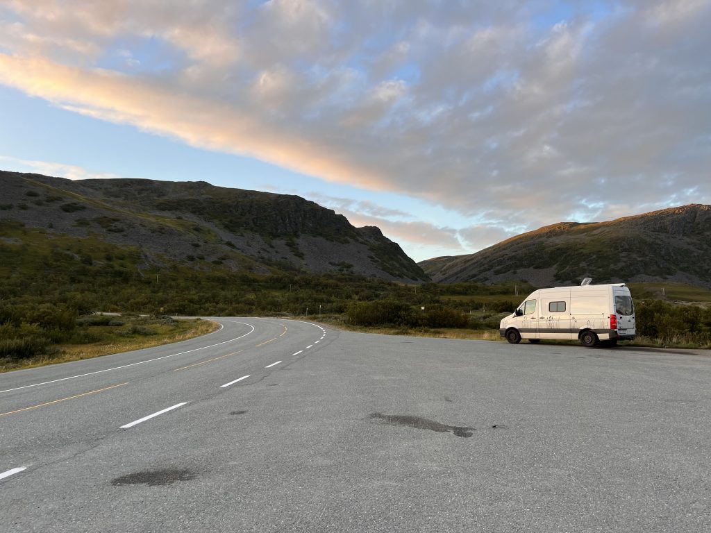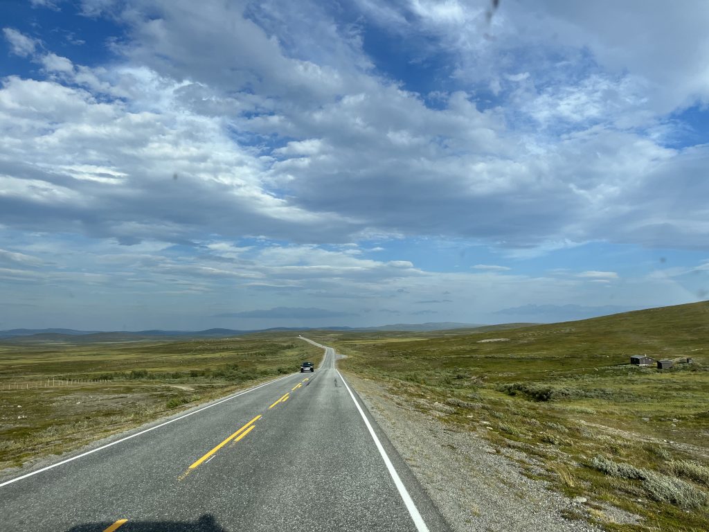 Am nächsten Morgen gibt es eine Stärkung und wir waschen noch ab bevor wir weiterfahren. Diesmal fährt Marco und wir sind noch keine 200 Meter gekommen, da sehen wir das erste Rentier. Danach verläuft die Weiterfahrt ziemlich unspektakuläre. In Alta machen wir einen kurzen Zwischenstop und arbeiten noch ein bisschen bevor es weiter in Richtung Nordkapp geht. Die Strassen sind sehr kurvenreich, manchmal ziemlich schmal und manchmal eine riesen Baustelle.