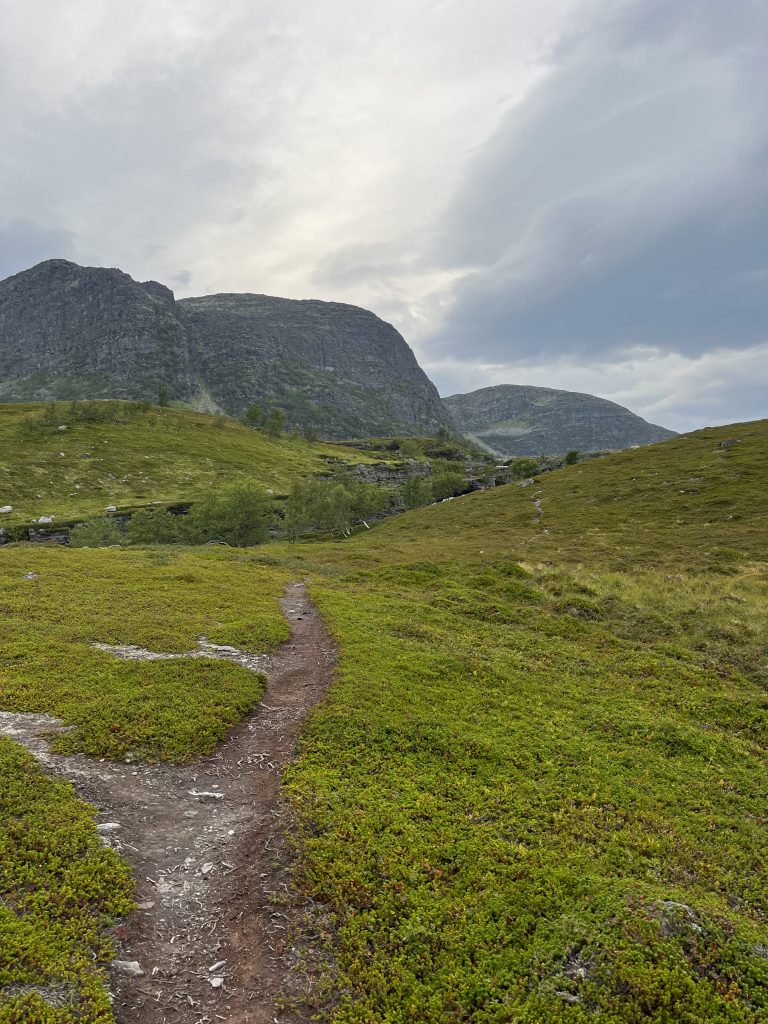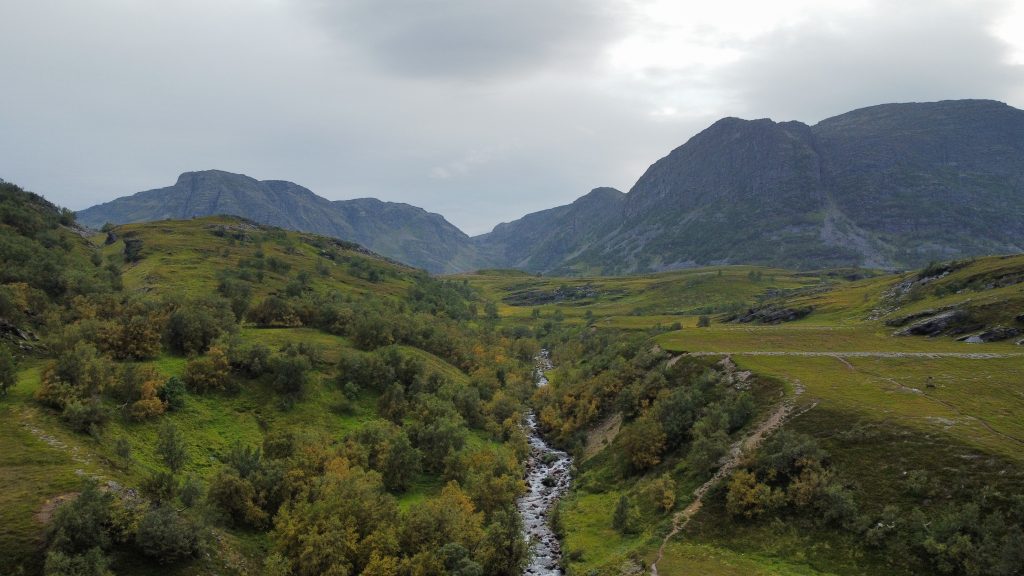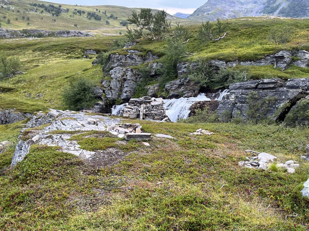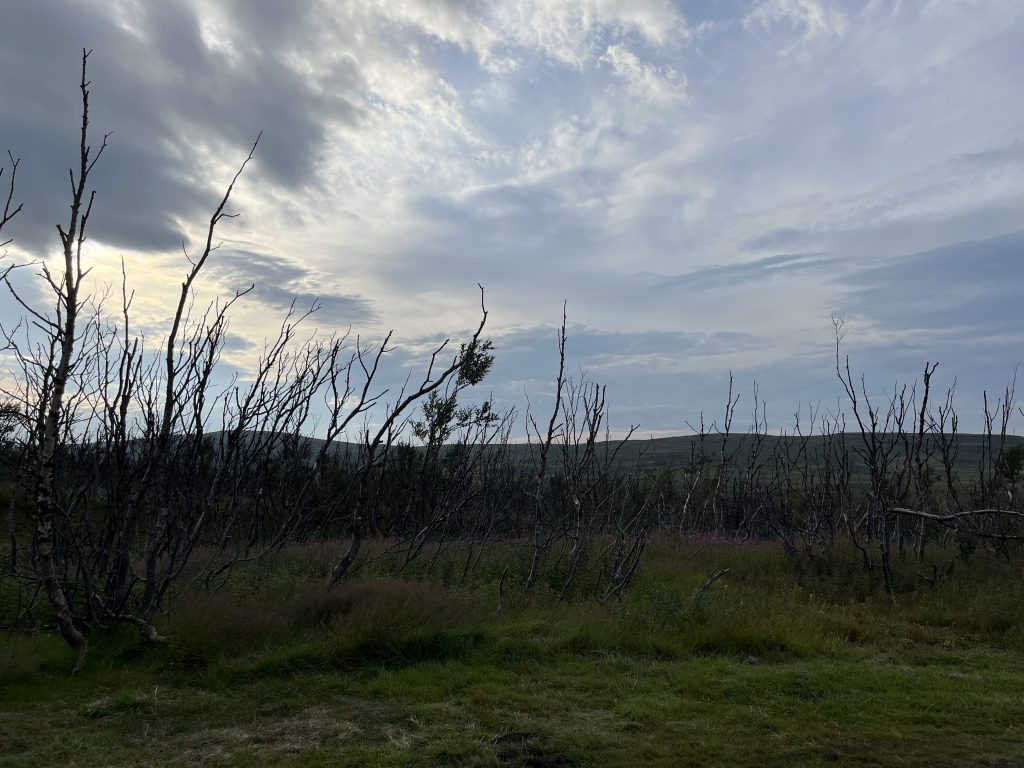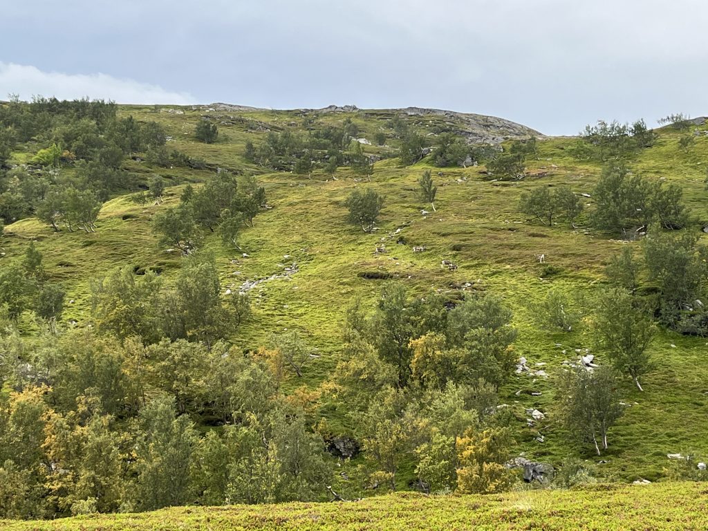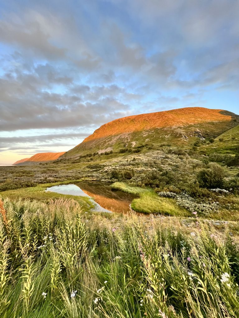 Irgendwann beschliessen wir, dass es Zeit für eine Pause ist und wir mal wieder Baden sollten. So suchen wir uns eine Platz mit einem Bach. Eins, zwei, drei und rein ins kalte Wasser. Danach fühlen wir uns aber wieder erfrischt und könnten die Reise fortsetzten. Da wir aber zuvor eine Gruppe Rentiere gesehen haben, mache ich mich mit dir Kamera auf den Weg um sie zu suchen. Ich wandere auf dem Plateau entlang und finde keine. Als ich mich schon auf den Rückweg machen will, sehe ich plötzlich eines. Kurze Zeit später sehe ich noch eine Herde mit fünf Tieren, welche aber sehr weit weg ist. So mache ich mich auf den Weg zurück. Marco hat in der Zwischenzeit mit Campern ein Gespräch gestartet und unsere Weiterfahrt verzögert sich nochmals etwas.