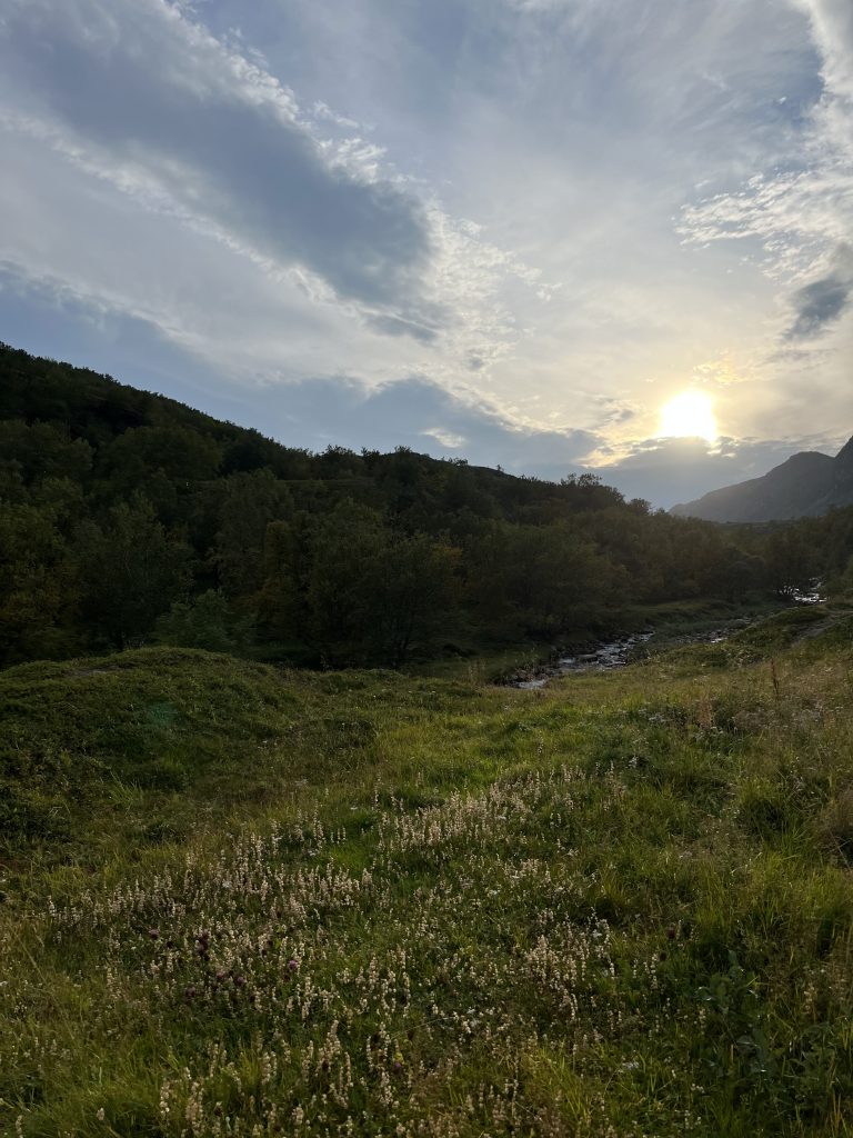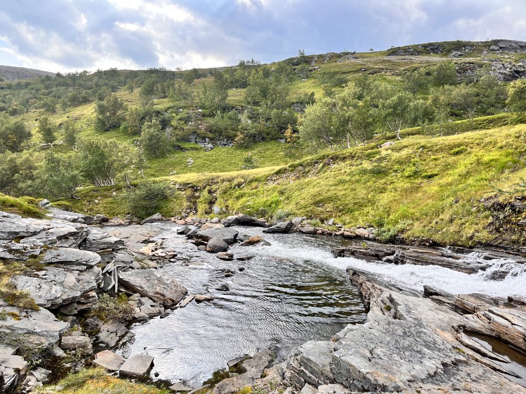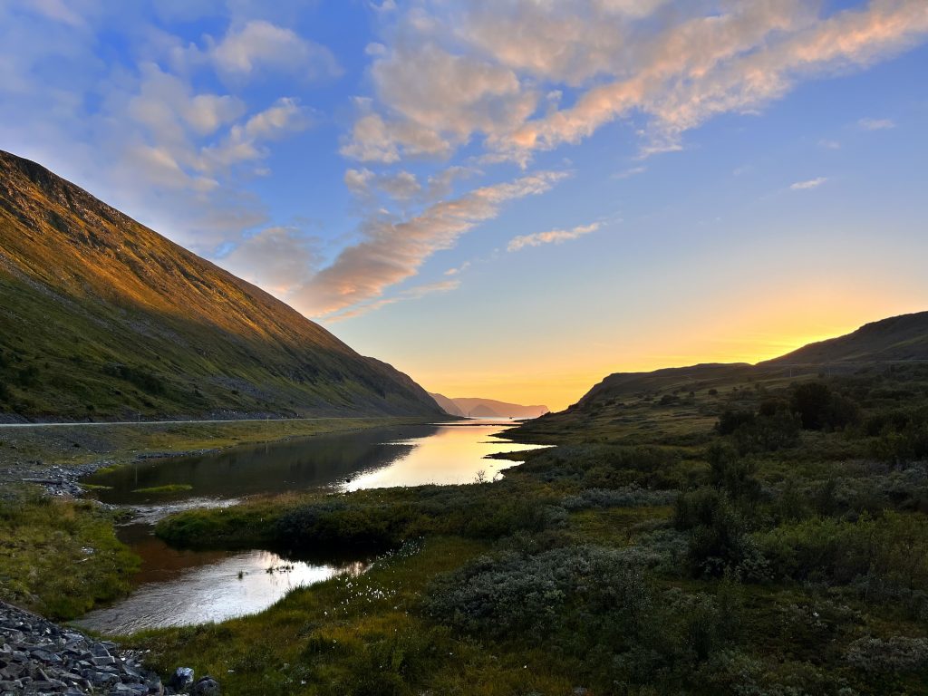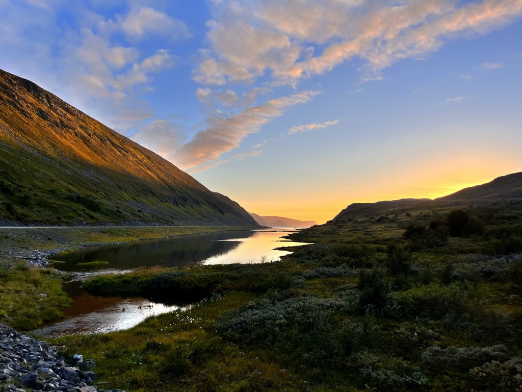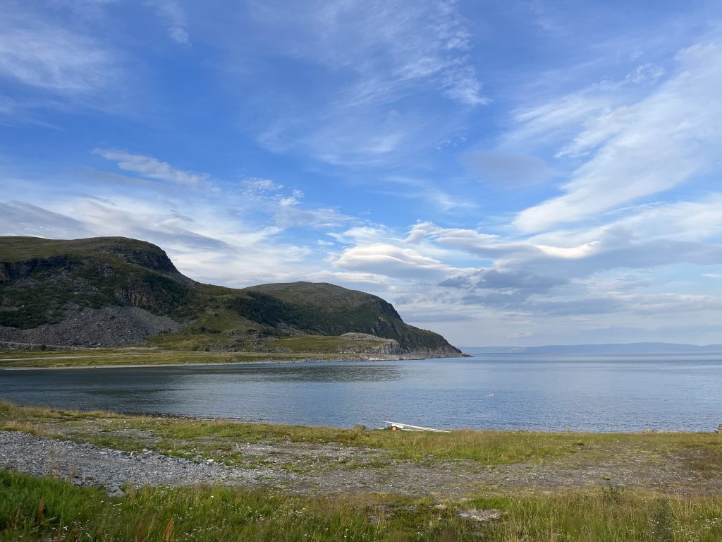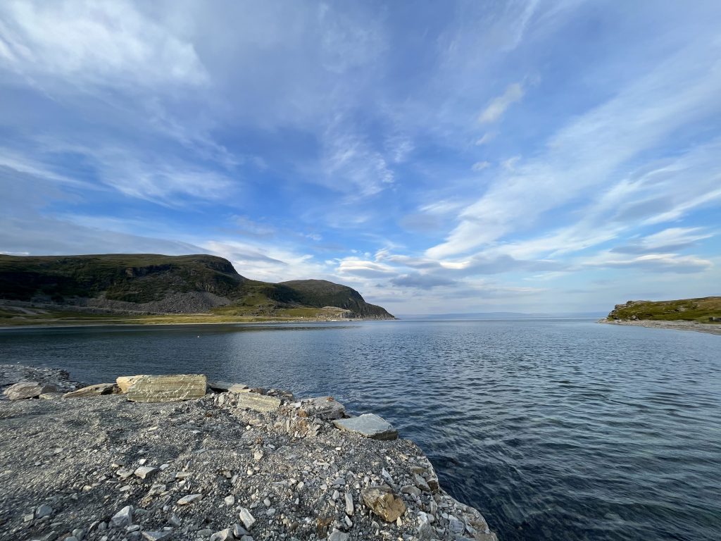 Danach machen wir uns auf den Weg nach Honningsvåg. Von dort aus geht es wieder zurück in die Richtung aus welcher wir gekommen sind. An der gleichen Stelle wie am Vortag machen wir eine Rast und gehen nochmals Baden. Dieses Mal etwas weiter Oben, da der Bach dort ein Becken bildet.