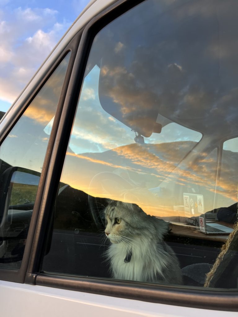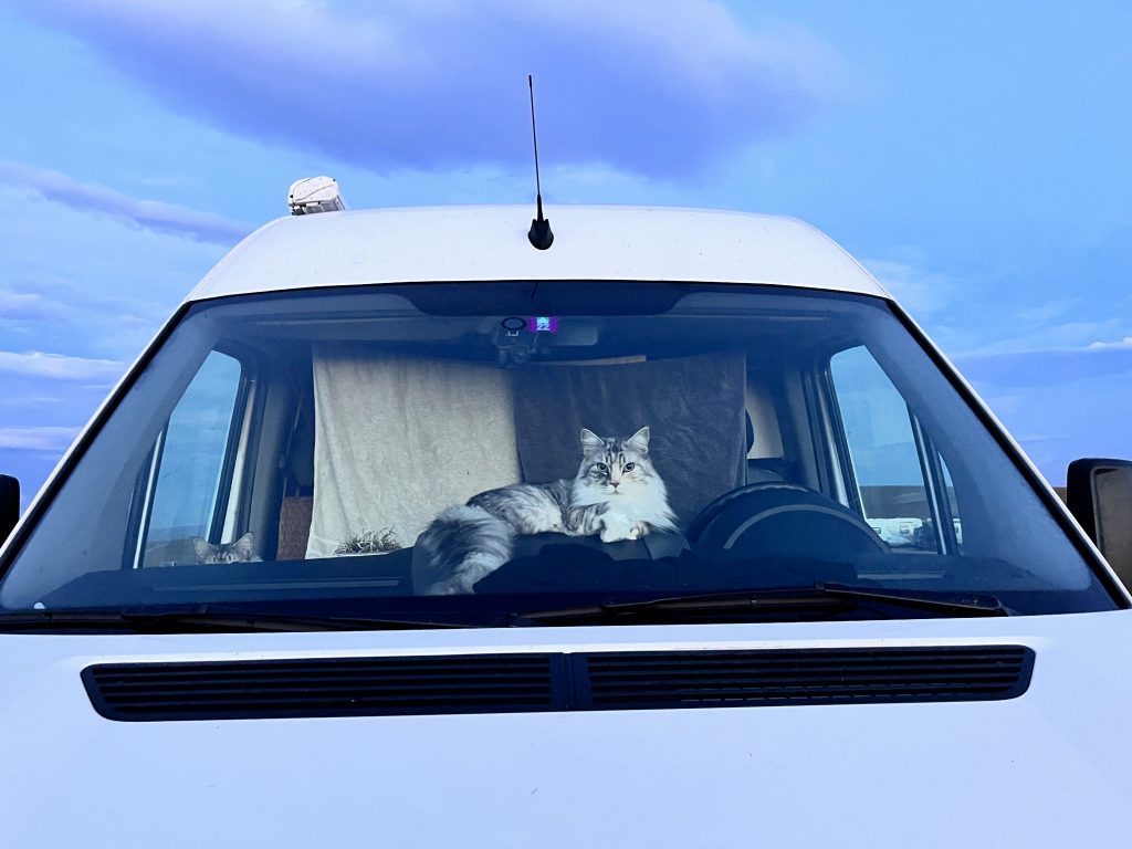 Den Sonntag verbringen wir wie geplant mit fahren. In der Zwischenzeit sind wir schon rund 1200 km weit gekommen und machen am Nachmittag einen Rast an einem wunderschönen See. Wir baden und das Wasser ist sogar angenehm und nicht all zu kalt. Danach dürfen natürlich die zwei Stubentiger sich noch austoben. Leider dürfen wir hier nicht übernachten. So fahren wir noch etwas weiter und verbringen eine ruhige Nacht auf einem Rastplatz.