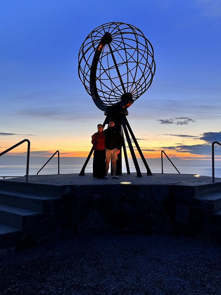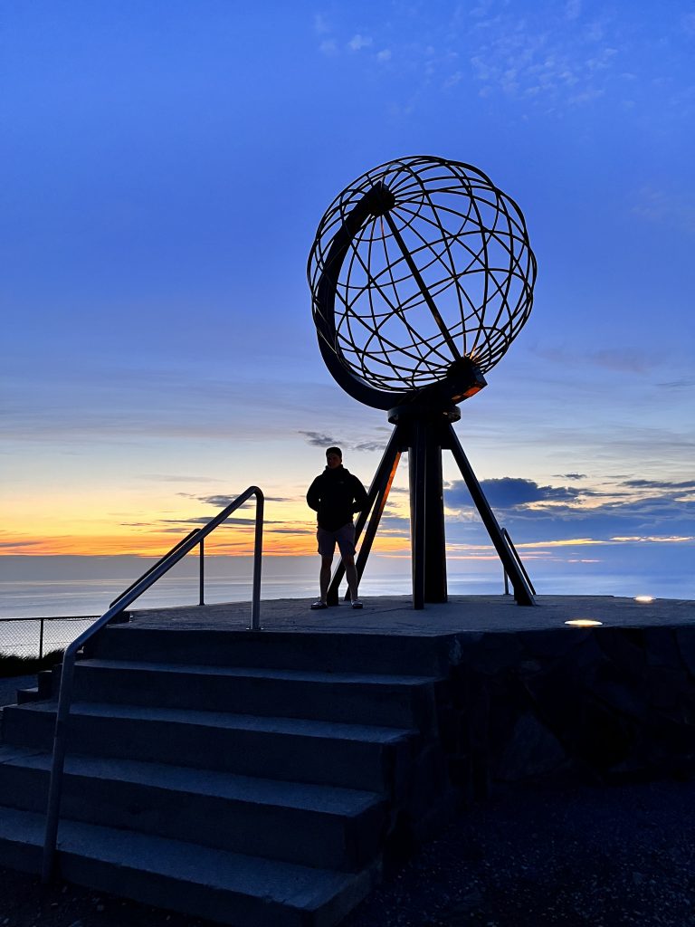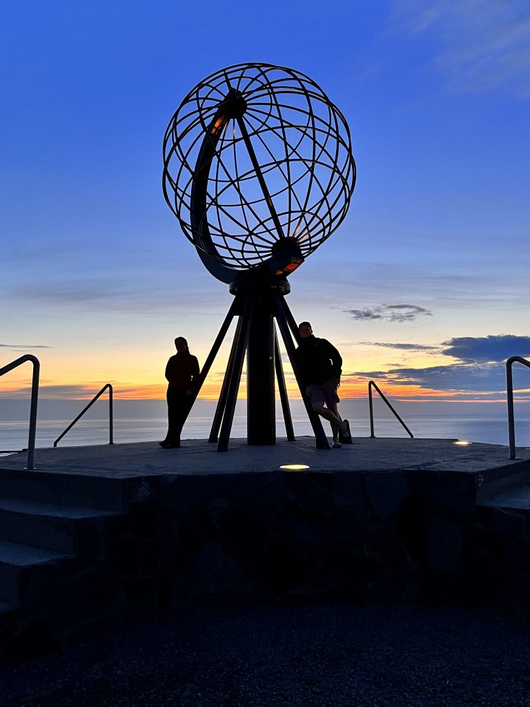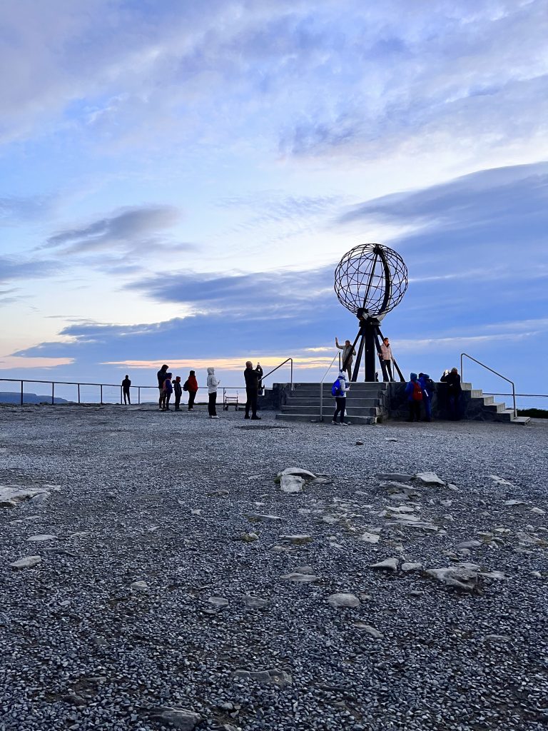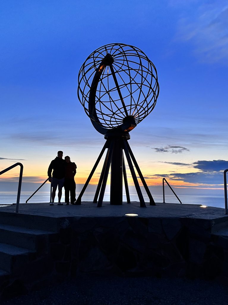 Um ca. 23.00 Uhr kommen wir dann am Nordkapp an. Der Himmel ist etwas bewölkt. Trotzdem sieht man verschiedene Farben. Und es windet unglaublich. Man kann sich richtiggehend in den Wind legen. Jetzt ist es noch sehr voll und überall hat es Menschen. Daher beschliessen wir nochmals zurück zu Knuschel zu gehen und wollten eigentlich Morgens um vier Uhr nochmals gucken. Jedoch sind wir dann noch etwas wach und stellen fest, dass es um kurz nach Mitternacht nur noch sehr wenige Personen hat. Daher verwerfen wir unseren Plan mit dem Sonnenaufgang und gehen jetzt nochmals.