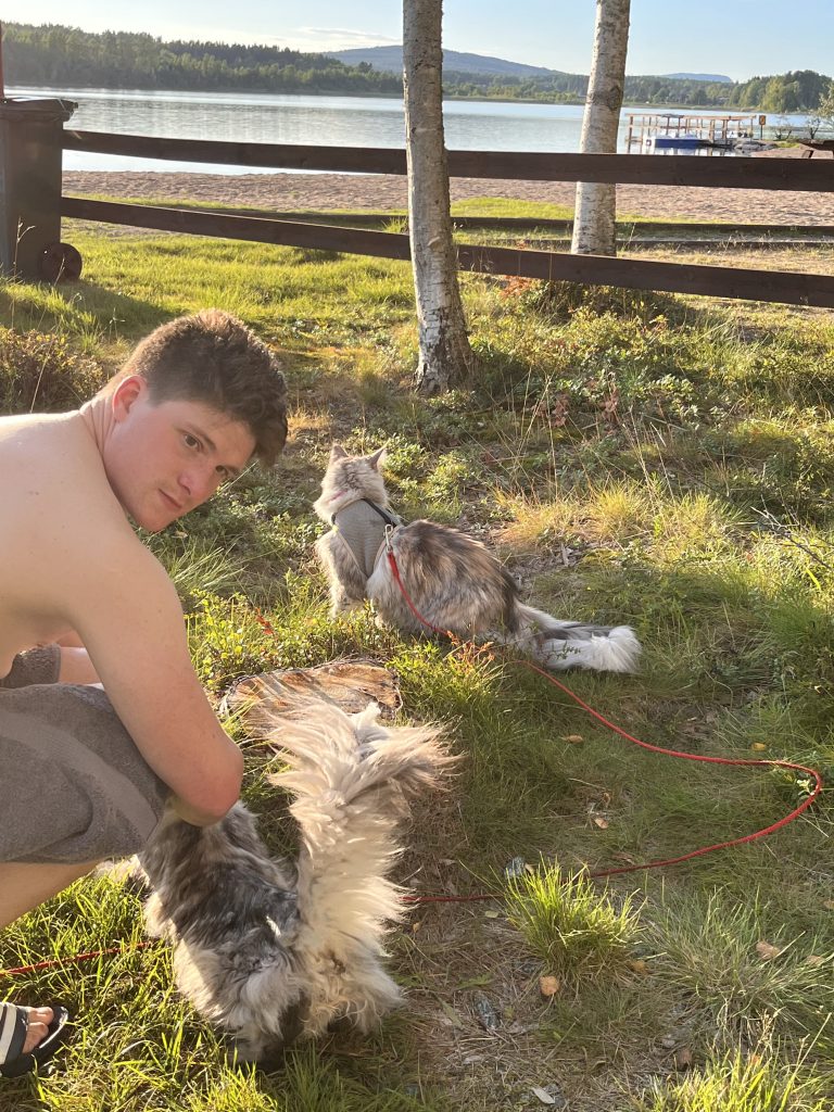 Und schon haben wir wieder Freitag. Wir machen uns auf den Weg nach Stockholm. Die Tage verbringen wir vorallem im Auto mit fahren. Denn mit einer maximalen Geschwindigkeit von offiziellen 80 oder 90 km/h kommt man nicht schnell voran. Den Freitag lassen wir mit einem Katzenspaziergang ausklingen. Sogar Dylan ist dieses Mal dabei. Da es hier aber einige (viele) Mücken hat, machen wir uns schon nach kurzer Zeit wieder auf den Rückweg.