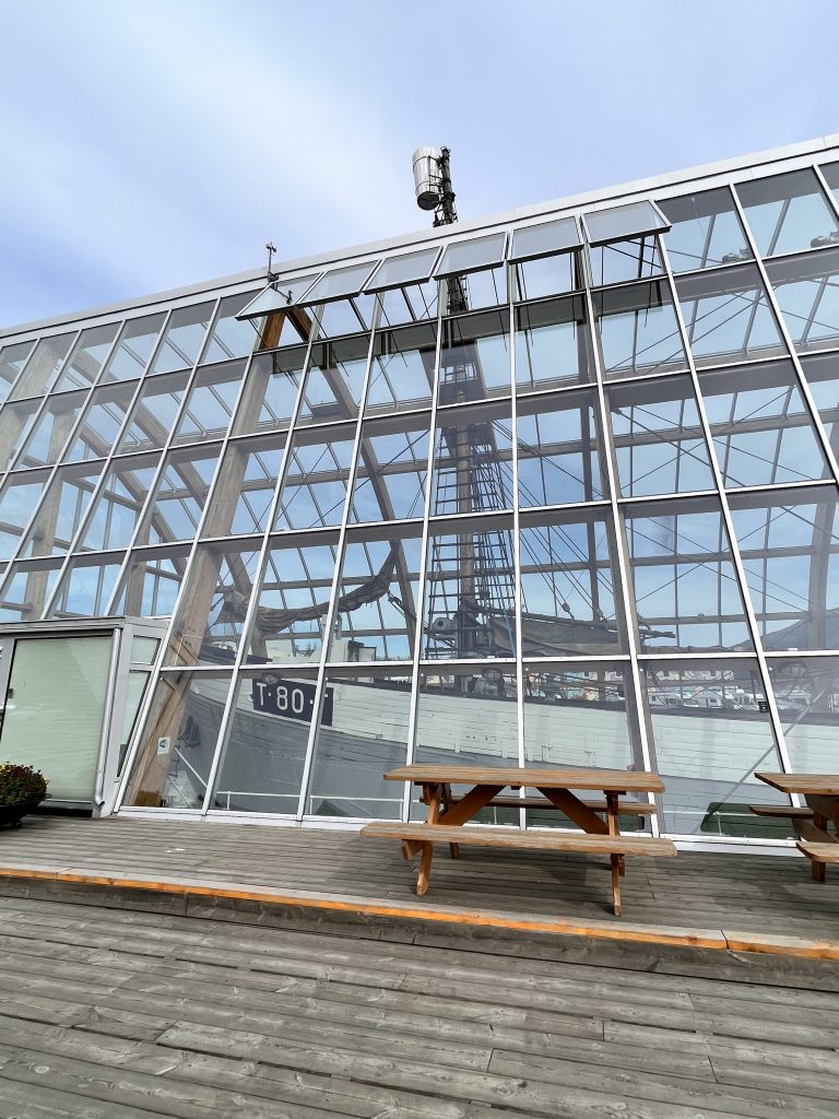 Dann machen wir uns auf den Weg zum auserkorenen Parkplatz. Nur das unser Navi wiedereinnahmst findet, dass es eine anderen Plan hat und uns irgendwo in ein Wohnquartier lotst. Irgendwann begreifen wir es auch noch, dass wir falsch sind und machen uns auf den „richtigen“ Weg. Da angekommen machen wir uns zu Fuss auf den Weg in die Stadt. Wir sehen uns das Schiff im Glashaus an. Danach schlendern wir an der Hafenanlagen entlang und stechen danach irgendwann in die etwas touristischere Fussgängerpassage ein. Da ich eigentlich schon in Bergen einen Norwegerpullover kaufen wollte, mache ich das nun hier noch. Einer in meiner eher kleine Grösse zu finden war etwas schwierig. Aber schlussendlich habe ich es noch geschafft.