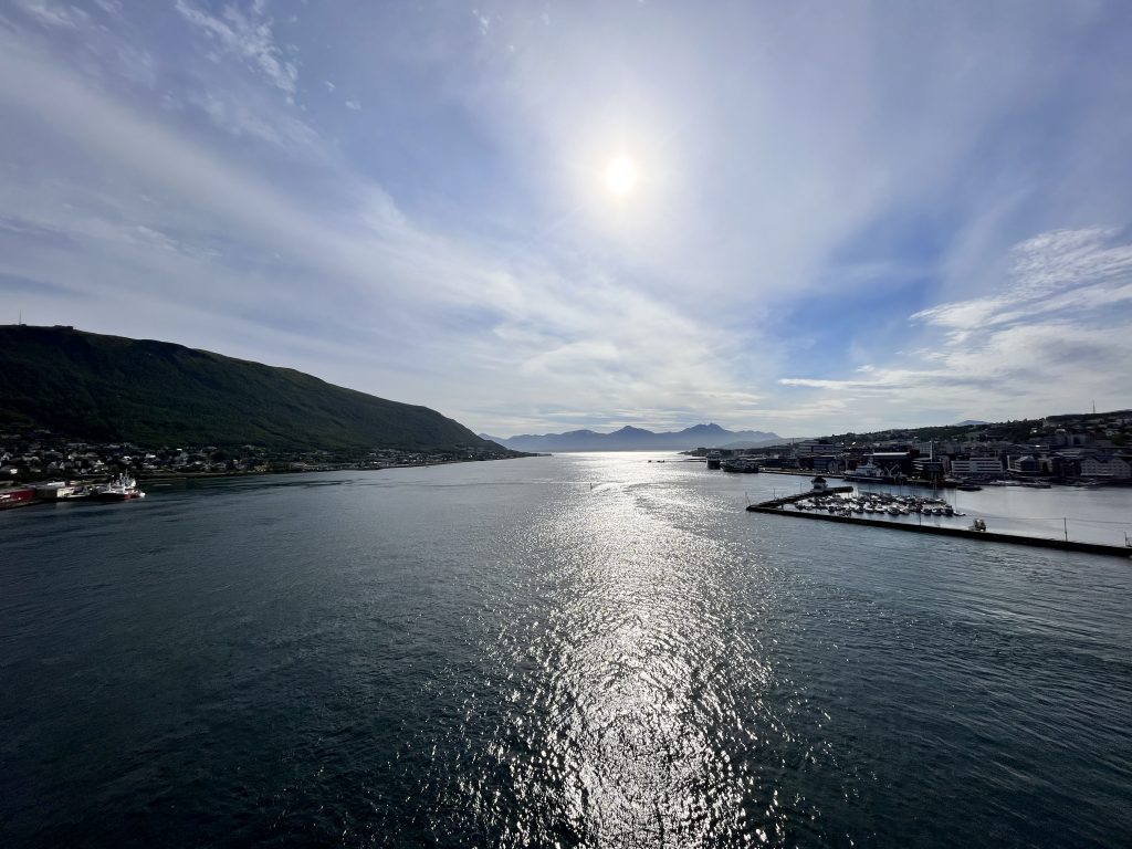 Wir stehen bei Zeiten auf. Marco macht mir ein leckeres Frühstück und danach machen wir zusammen noch den Abwasch, bevor es auch schon weiter nach Tromsø geht. Nach einer knappen Stunde kommen wir da auch schon an. Da wir schon seit längerer Zeit das Gewicht von Knuschel kontrollieren wollten, machen wir einen Zwischenstopp beim Campinghändler, welcher wir per Zufall finden. Leider haben auch sie keine Waage, verweisen uns aber an die städtische Fahrzeugkontrolle. Daher fahren wir da hin und wollen unser Glück versuchen. Obwohl erst 11.30 Uhr ist, finden wir niemanden vor Ort und unter der Nummer, welche an der Tür hängt, nimmt niemand ab. Zum Glück warten zwei freundliche Norweger noch auf Ihren Termin am Nachmittag und sagen uns, dass sich die Waage hinter dem Gebäude befindet und wir einfach drauffahren dürfen. Ich hätte es nicht für möglich gehalten. Aber wir sind immer noch unter 3.5 Tonnen. 3’380 Kilogramm und alle Tänke sind voll. Wuhuuu. So müssen wir uns nicht all zu grosse Sorgen machen, falls wir mal in eine Kontrolle kommen.