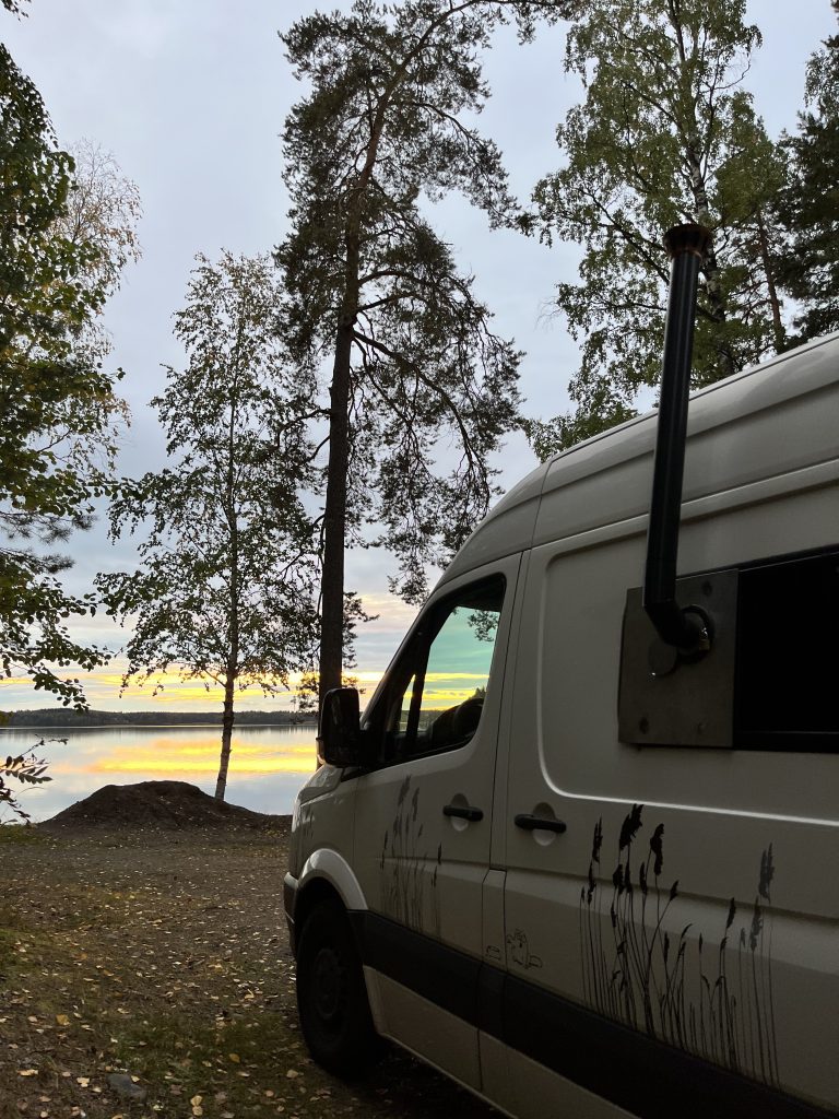 Da es gestern Abend sehr spät geworden ist, mit dem Einbau unserer Lampe, schlafen wir heute Morgen etwas länger. Danach machen wir uns auf den Weg. Denn Knuschel möchte wieder eimal aufgefrischt werden. So kommt es, dass wir zu einer Servicestation fahren und alle nötigen Dinge auffrischen. Da wir danach noch Waschen wollen, steuern wir einen Waschsalon an. Puhhh. Ist das teuer. Eine Maschine und ein Durchgang im Trockner für fast 16.- €. Aber was solls uns bleibt ja nicht viel anderes übrig. Während die Maschine läuft machen wir uns an die Routenplanung. Durch dass wir ja in knappen zwei Wochen Besuch bekommen, wollen wir davor alles unter eine Hut kriegen. Da das Planen natürlich viel besser geht mit etwas im Bauch, essen wir ein kleines Dessert. Zimtrollen gibt es hier Oben überall und ich liebe sie einfach. Nach einiger Zeit steht unsere provisorische Route, die Wäsche ist fertig, die Einkäufe sind erledigt und einige Postkarten befinden sich auf dem Weg zu ihrem Ziel. Auch wir machen uns auf den Weg in Richtung Nordosten. Wir fahren rund vier Stunden. Da es schon langsam wieder dunkel ist, können wir auch unsere neue Lampe ausprobieren und richten. Am Platz angekommen machen wir uns noch etwas kleines zu Essen und ein Feuer bevor es auch schon wieder ins Bett geht.