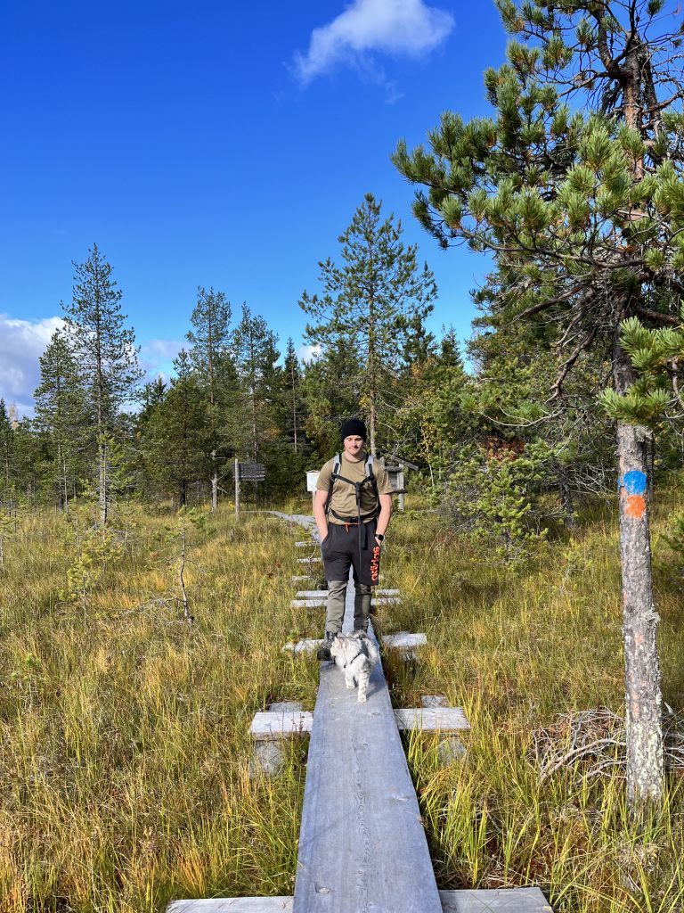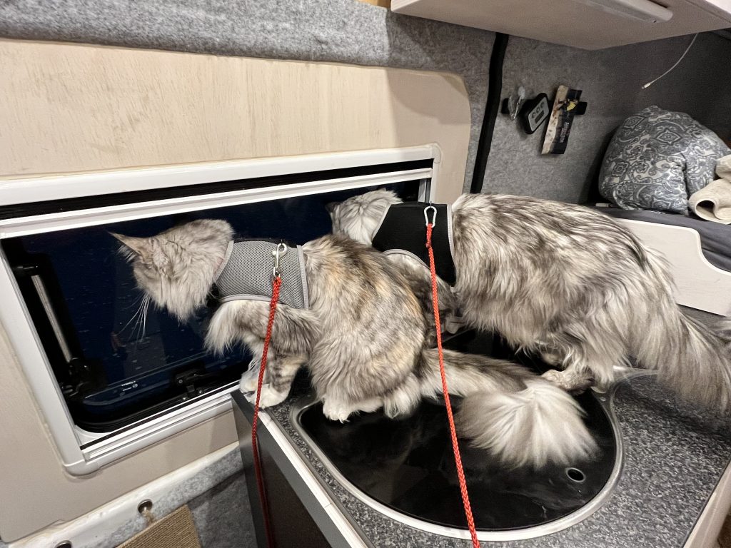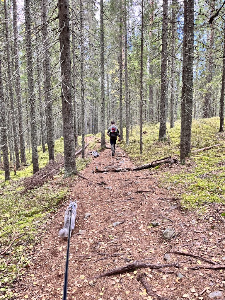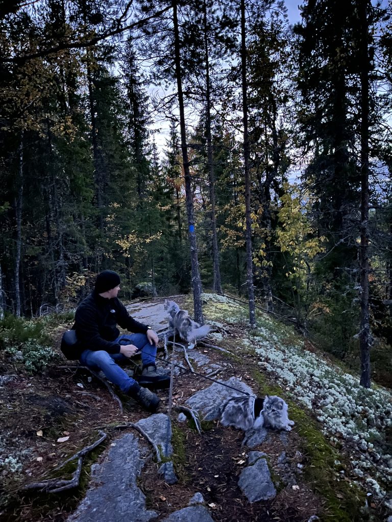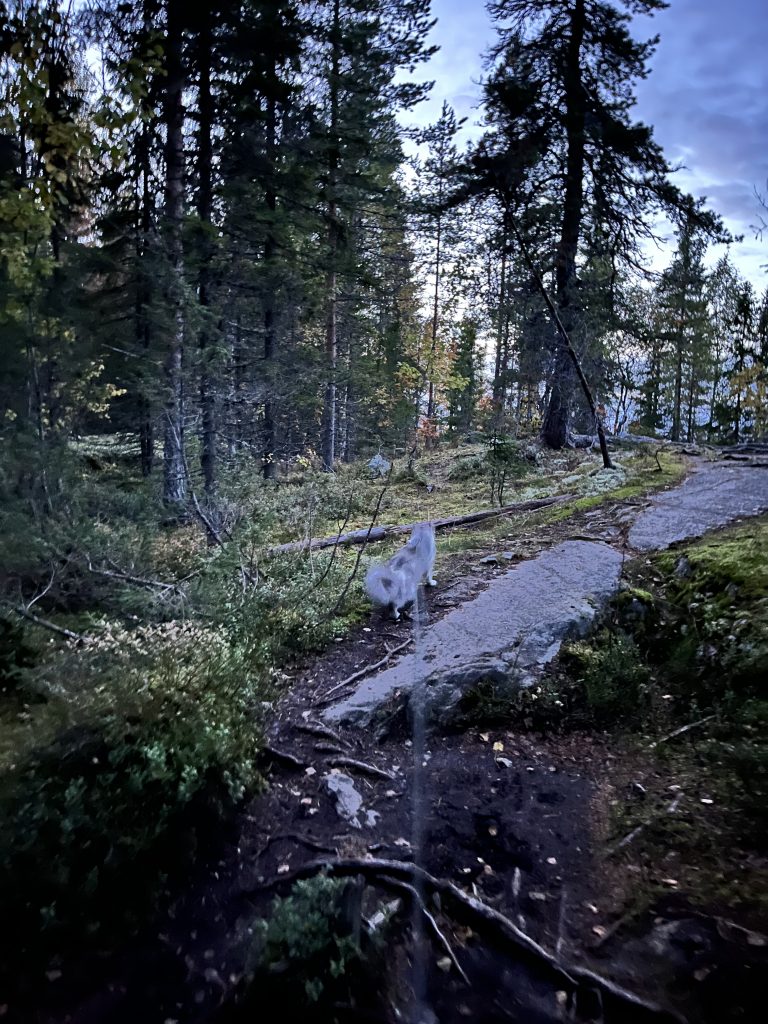 Ein Stop in einen Kaffe in welchem wir alle Fotos für die Webseite uploaden können und natürlich eine Zimtschnecke essen. Danach suchen wir noch eine Poststation um Briefmarken zu kaufen bevor es auch schon wieder weiter geht in den Nationalpark. Unser angefahrener Parkplatz ist nicht so der Hit. Daher machen wir uns auf die Suche nach einem anderen Stellplatz. In der Nähe eines Wanderweges werden wir dann fündig. Da Dinah schon wieder unruhig ist und nach draussen möchte, leinen wir die Beiden an und gehen Los. Leider schaffen wir nicht die ganze Strecke bei Tageslicht. Daher ist uns ziemlich bald klar, dass wir wieder umkehren und die Wanderung auf den morgigen Tag verschieben werden. Zurück im Knuschel hilft Marco noch ein Auto zu flicken währen ich unser Abendessen vorbereite.