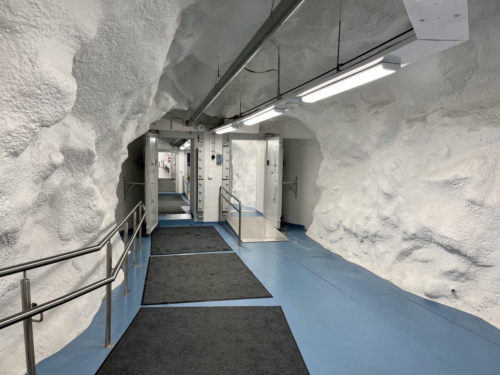 Da es erst früher Nachmittag ist und wir schon lange nicht mehr geduscht haben, beschliessen wir noch baden zu gehen. Dort angekommen sind wir etwas verwirrt. Denn der Eingang fürs Bad führ tin einen Bunker. Das Hallenbad ist wirklich im Bunker drinnen. Männer und Frauen in den Umkleidekabinen sind hier strickt getrennt. Auch die Saunen sind hier getrennt. Ich ziehe als mein Bikini an und mache mich auf den Weg zu den Duschen. Schon auf dem Weg werde ich etwas schräg angeschaut. Irgendwann geht mir ein Licht auf…. Hier ist es üblich, ohne Badeanzug zu duschen. Alle sind nackig und es scheint ganz selbstverständlich. Auch in der Sauna ist man nackig. Nur wenn man ins Schwimmbecken möchte zieht man sich kurz den Badeanzug an. Andere Länder andere Sitten….