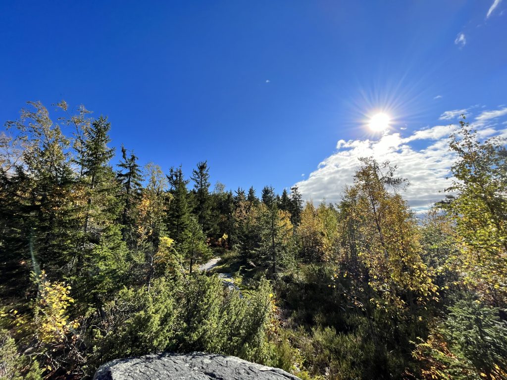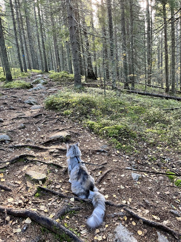 Heute ist es soweit. Wir nehmen die beiden Mauzis auf die erste „grosse“ Wanderung mit. Rund 6.5 Kilometer sind geplant. Mal schauen wie sie sich schlagen. Dinah ist natürlich Feuer & Flamme dass sie nach draussen kann. Dylan ist etwas skeptisch. Jedoch darf er für den Anfang im Rucksack mitreiten. Es ist wunderschön hier. Der Wald ist noch naturbelassen. Überall liegt das heruntergefallene Holz, altes Laub vermischt sich mit dem neuen, Moos wächst auf Steinen, an Bäumen und am Boden. Es sieht einfach natürlich und naturbelassen aus. Die Wanderung führt über Stock und Stein, über Wurzeln und kleine Wasserläufe. Dinah freuts. Wir sind wirklich beeindruckt wie gut sie sich schlägt. Den ganzen Hinweg läuft sie ganz alleine. Mit Dylan ist es da schon etwas schwieriger, aber auch er läuft ab zu ein kurzes Stück bevor er wieder ins Rucksacktaxi einsteigen möchte. Am Aussichtspunkt angekommen ist es atemberaubend. Die herbstlichen Bäume bringen den Wald richtig zum strahlen. In der Ferne können wir verschiedene Seen sehen. Einfach wunderschön. Kurz nach dem Aussichtspunkt gibt es dann aber auch eine Stärkung für alle.