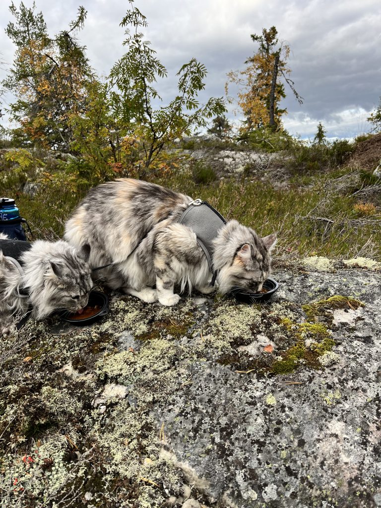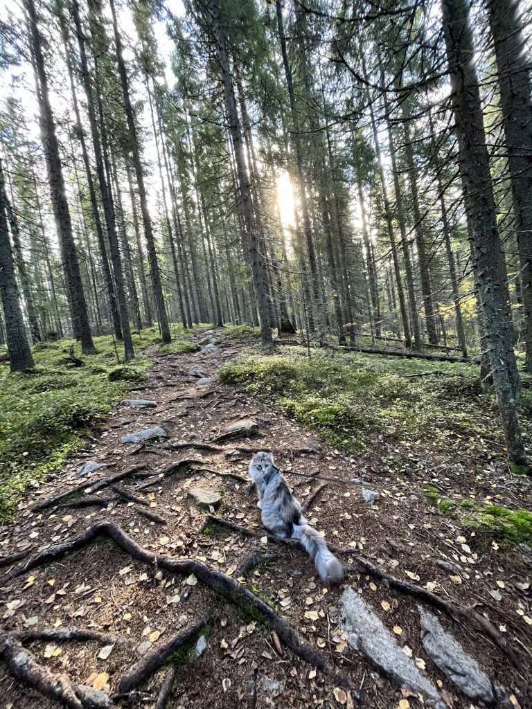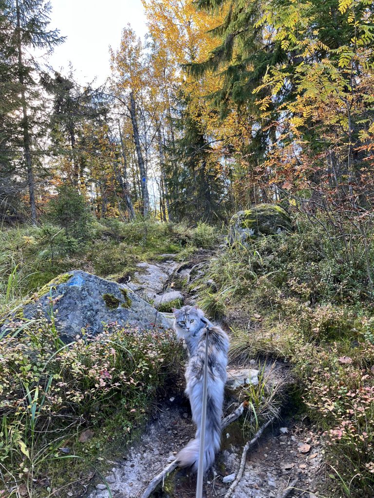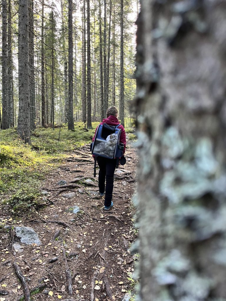 Danach darf auch Dinah ein Stück im Rucksack mitreiten und ein Verdauungsschläfchen halten. Aber schon nach knappen 30 Minuten möchte sie wieder selber laufen. So kommt es, dass sie immer Mal wieder die Attraktion ist auf dem Wanderweg. Viele (wir treffen in sechs Stunden ca. 30 Nasen an) wollen natürlich die Katzen streicheln und sich mit uns unterhalten. Am Anfang ist das ja ganz nett, aber irgendwann wird es wohl auch Dinah zu viel. Denn sie möchte nur noch zurück. Und bitte! Auch wenn es Katzen sind – zuerst fragen vor dem Anfassen. Es ist immer noch ein Tier und hat einen eigenen Willen. Ich verstehe es einfach nicht.