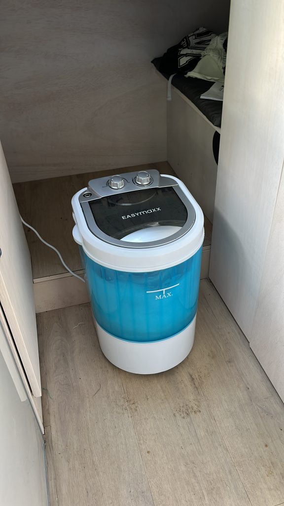 Danach war das Ziel einen Campingplatz anzufahren, sodass wir waschen konnten. Eigentlich hoffte ich auf eine funktionierende Waschmaschine. Tja leider nicht. Aber wir sind nicht unvorbereitet, und so machte ich mich mit unserer Reisemaschine ans Werk. Es dauerte etwas, aber am Schluss war alle wasche sauber und draussen aufgehängt zum trocknen.