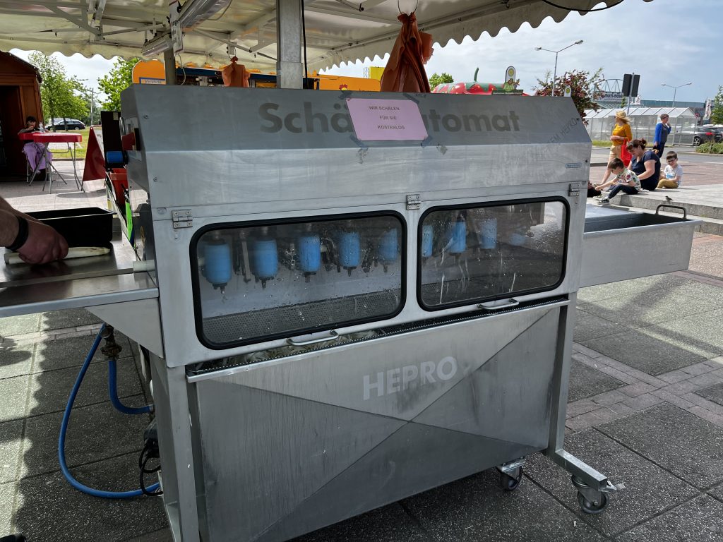 Montag 23. Mai. Diese Woche starteten wir mit einem wunderbaren Frühstück in einem kleinen aber feinen Restaurant. Gestärkt und mit vollem Magen machten wir uns auf den Weg. Auf unserer Liste stand Einkaufen und einen Baumarkt aufsuchen. Denn uns fehlten noch zwei drei Teile, die wir brauchten. Vor dem Einkaufscenter gab es frische Spargeln. Also beschlossen wir einige zu kaufen. Der Händler fragte uns, ob wir sie geschält haben möchten. Er hat einfach eine Maschine, die die Spargeln schält.