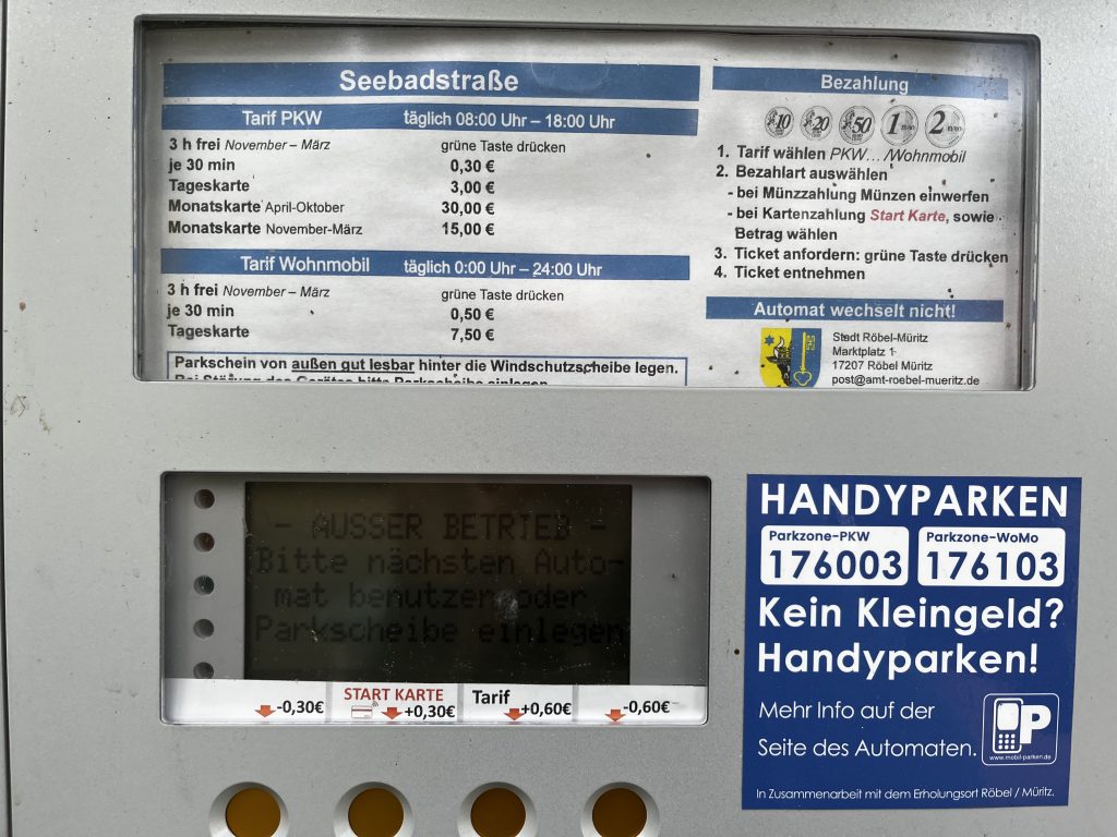 Auf dem Parkplatz den wir ansteuerten hätten wir eine Tageskarte lösen sollen. Doch zuerst schluckte der Automat unser Münz nicht und stieg nach dem zweiten Versuch ganz aus. Weit und breit gab es keinen weiteren Automaten, daher beschlossen wir das Geld abzuzählen und eine Notiz ans Fenster zu kleben. Denn es war Mittwoch, später Nachmittag und am Donnerstag war Auffahrt. Natürlich nah auf der Hotline niemand mehr das Telefon ab……