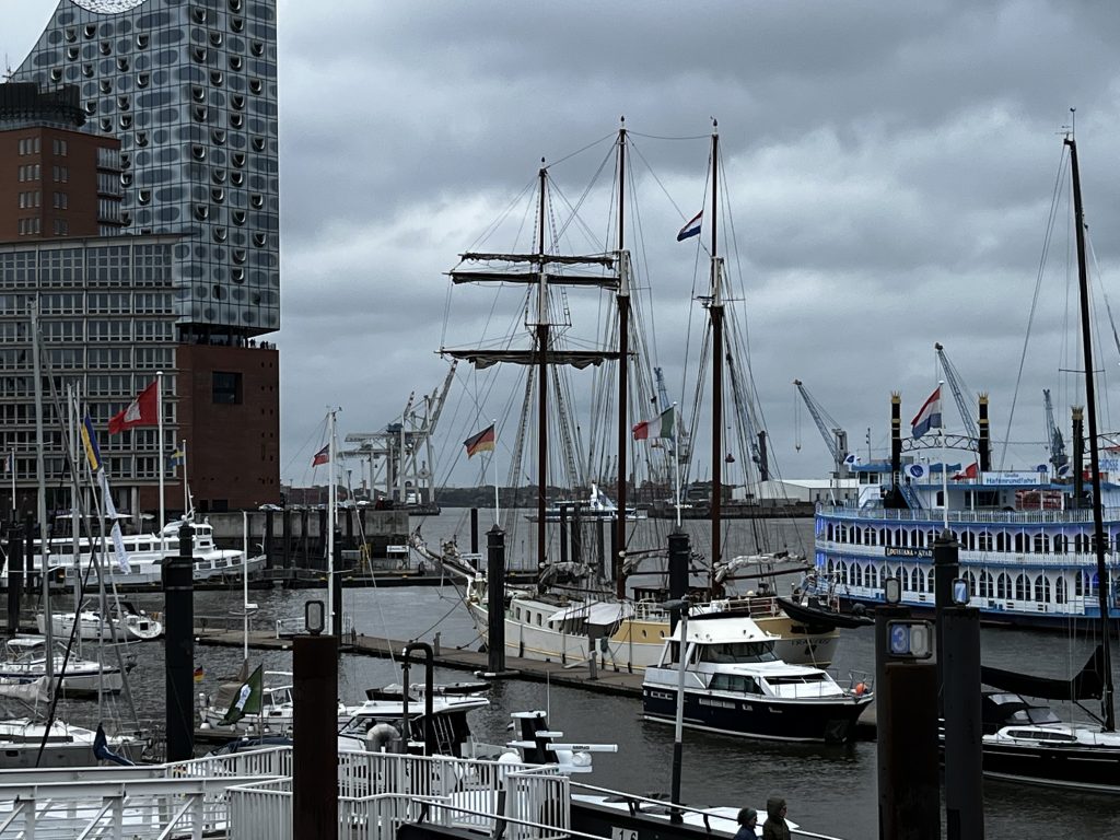 Danach machten wir uns zu fuss auf den Weg in die Innenstadt. Zum Zeitpunkt als wir loszogen, regnete es nicht. Doch mit dem Regen ist es so eine Sache. Kaum sind wir los, fing es an zu nieseln, dann zu regnen und dann zu schütten. Erstaunlich ist auch, dass viele Kaffes und lokale am Sonntag geschlossen haben, sodass wir uns nicht einfach in eines flüchten konnten. Durch den Regen liefen wir weiter und langsam wurde es kalt, da auch unsere Hosen vollkommen nass waren. Wir weigerten uns jedoch zurückzugehen und der Regen spülte uns ins Internationale Maritime Museum Hamburg. Zuerst wärmten wir uns uns auf, bevor wir die 9 Decks (Stockwerke) erkundet haben. Sie befassen sich mit jeglichen Themen rund um Schifffahrt.