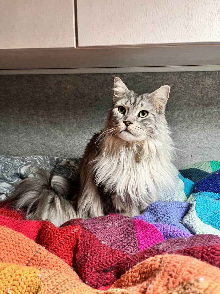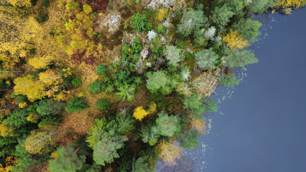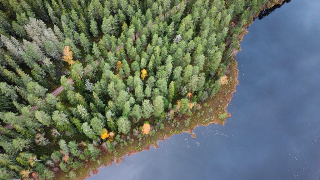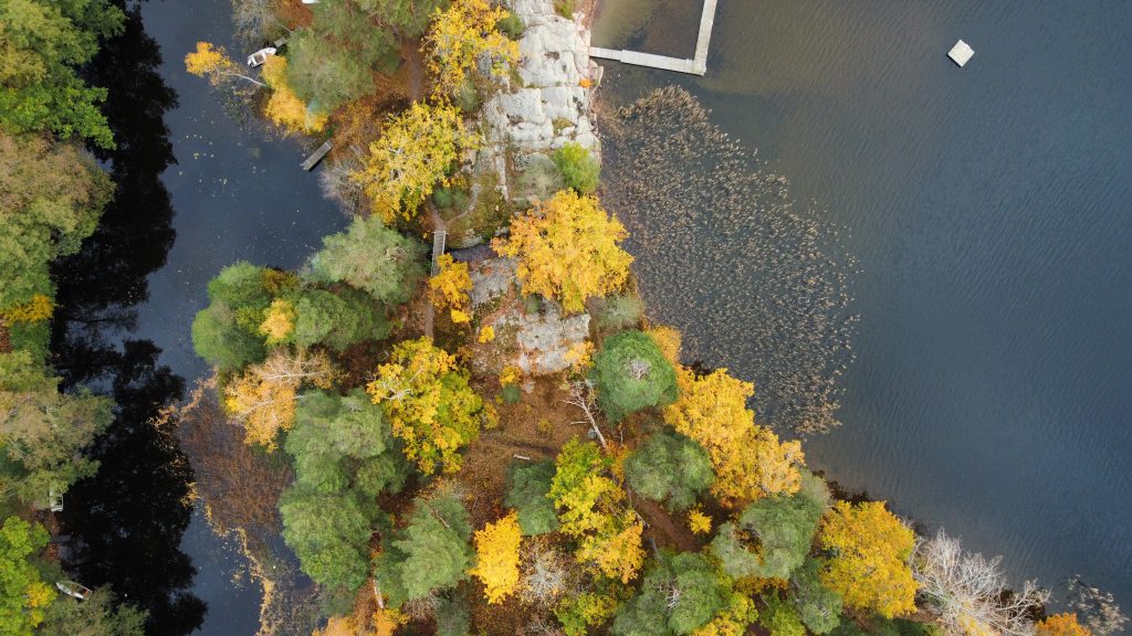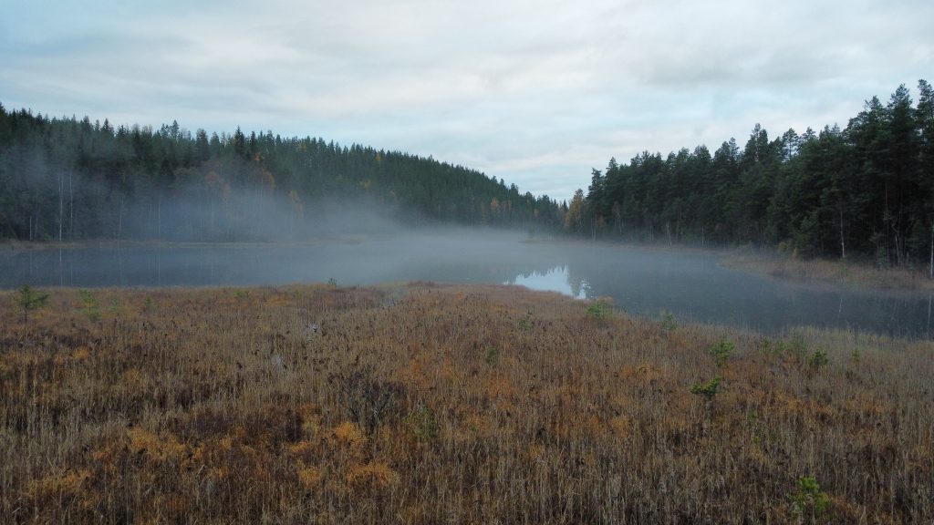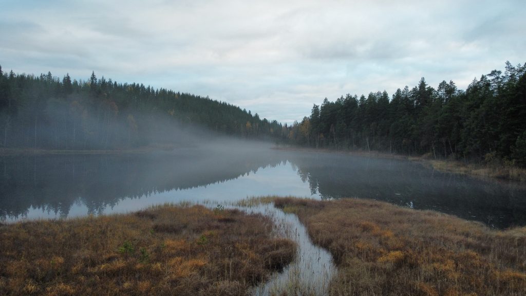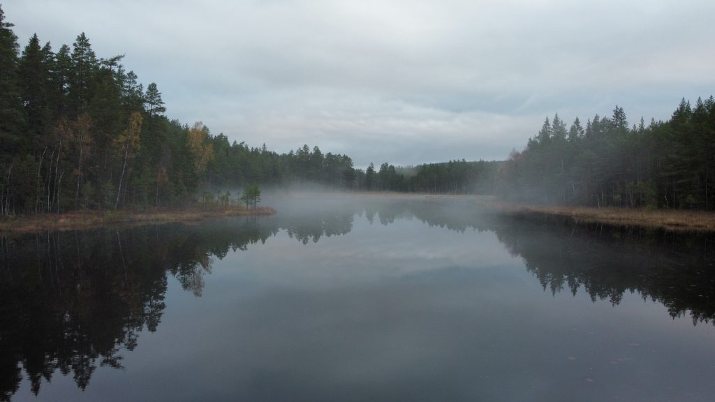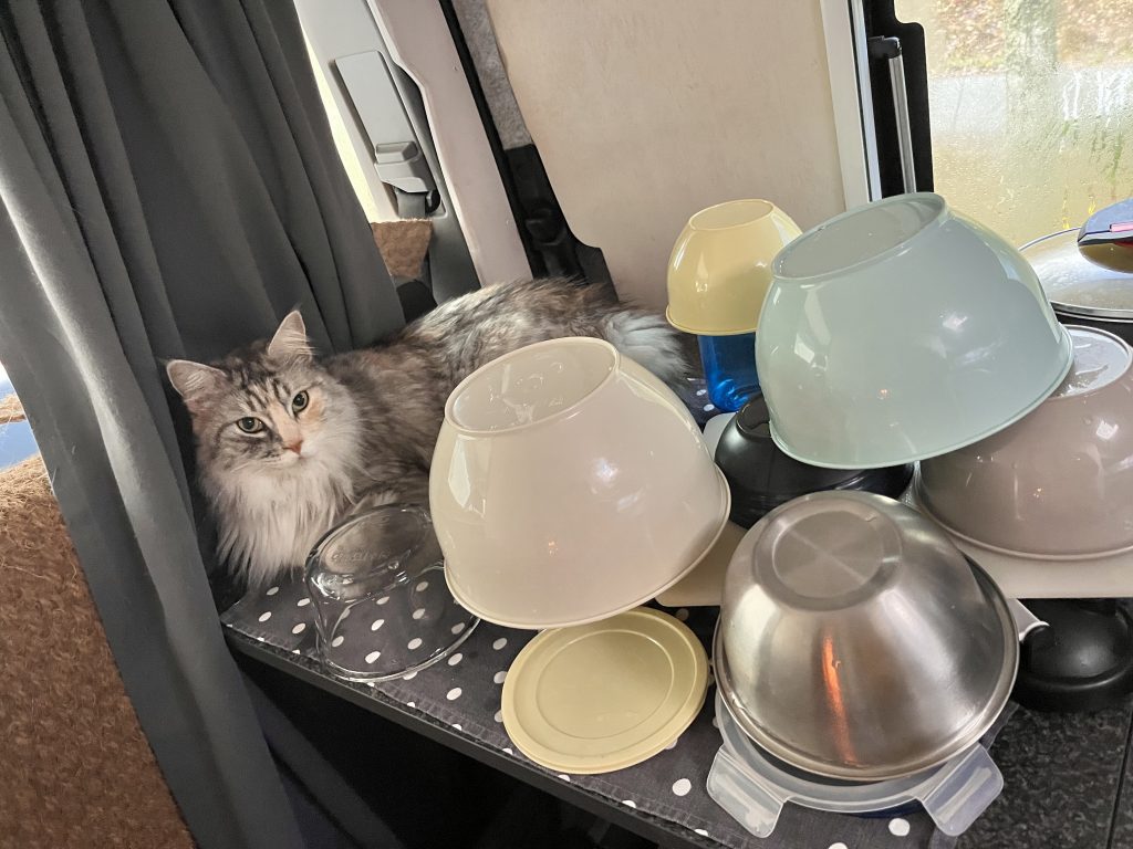 Bevor wir uns wieder auf den Wega machen, mache ich noch den Abwasch, während Marco joggen geht. Dann gibt es eine kalte Dusche draussen, da wir den Boiler nicht angeschmissen haben. Nach einem Spaziergang mit den Katzen machen wir uns wieder auf den Weg. Nach einiger Fahrtzeit machen wir eine Pause an einem See, lassen die Drohne steigen.
