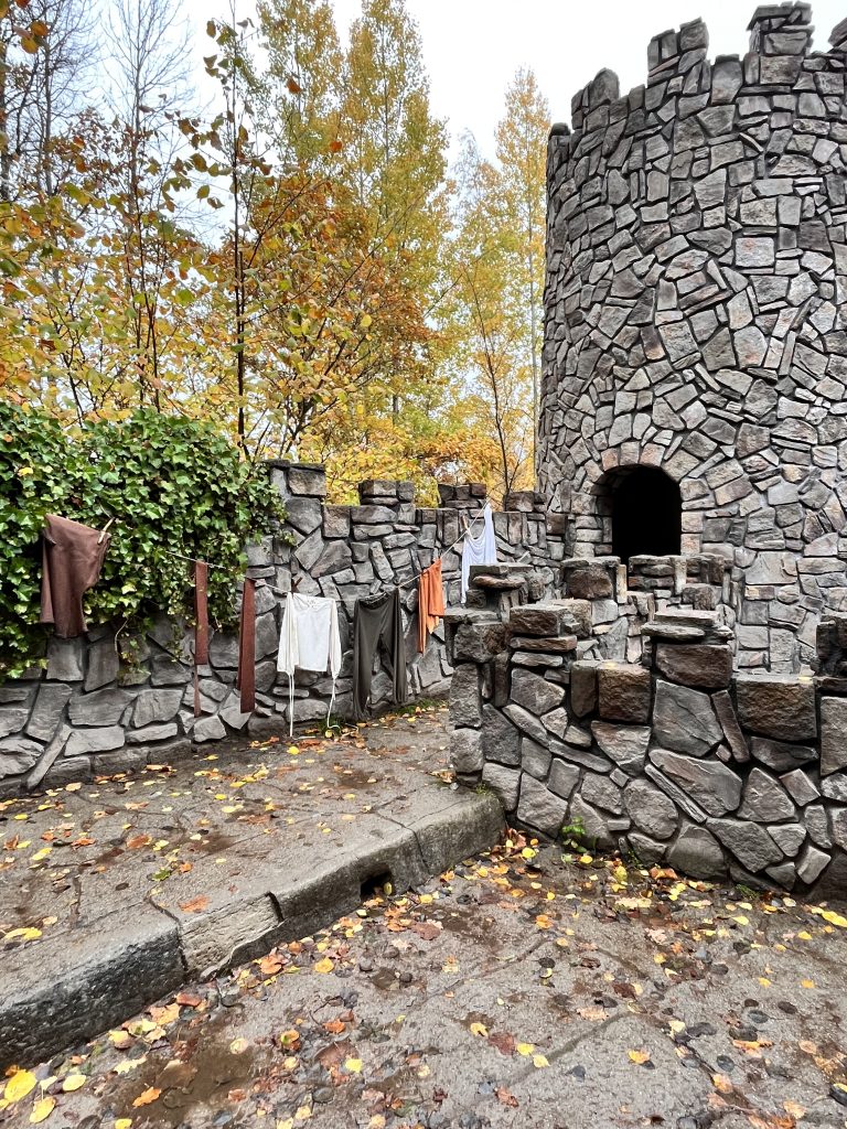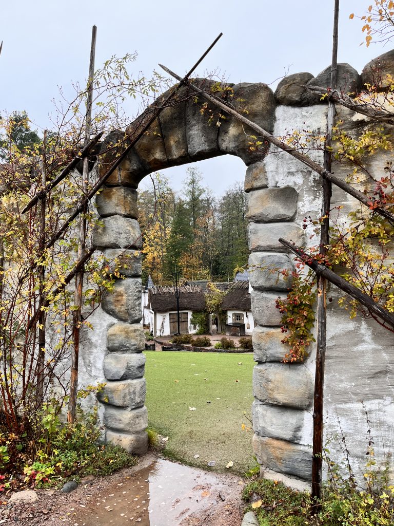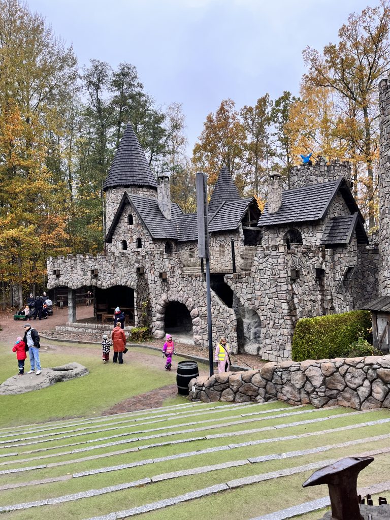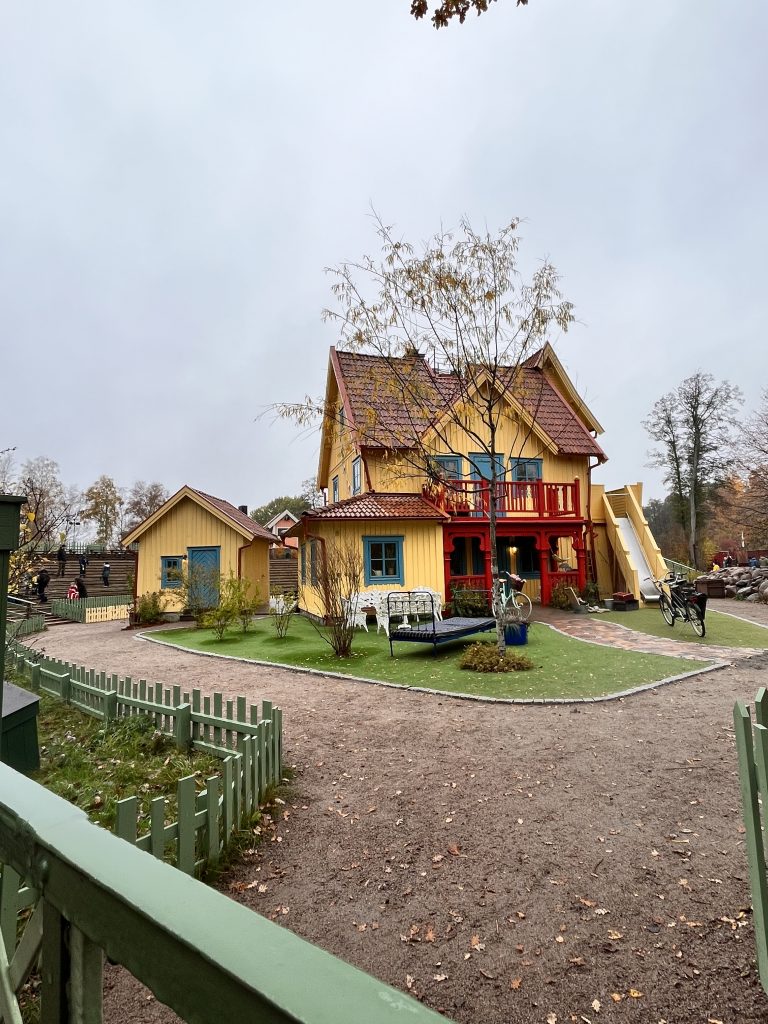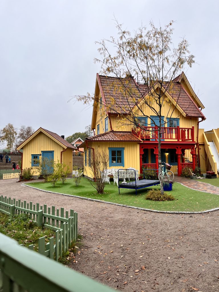 Ich beschliesse trotzdem noch den Themenpark zu besuchen, während Marco einige Zeit für sich nimmt. Im Park bin ich zwar zu gross und zu alt, jedoch macht es trotzdem Spass durch die Mattisburg zu schleichen und mich wie Ronja Räubertochter zu fühlen. Oder wie Pipi Langstrumpf in de Villa Kunterbunt. Auch die Brüder Löwenherz besuche ich und noch viele weitere Charakter aus den Geschichten von Astrid Lindgren. Am Schluss schaue ich mir noch das Pipi Langstumpf Theater an auf schwedisch. Zum Glück weiss ich wie die Geschichte geht, denn verstehen tu ich nicht viel. Da es die ganze Zeit Mal mehr Mal weniger Regnet mache ich mich danach auf den Rückweg, treffe Marco im Kaffe und danach gehen wir zusammen zurück zu Knuschel. Da wir in der Umgebung festsitzen fahren wir zum nahe gelegenen Nationalpark um unser Lager da aufzuschlagen. Wir unternehmen in einer Regenpause noch einen kurzen Spaziergang mit Dylan und Dinah bevor es auch schon wieder dunkel draussen wird.