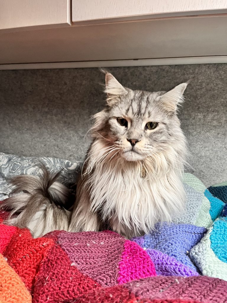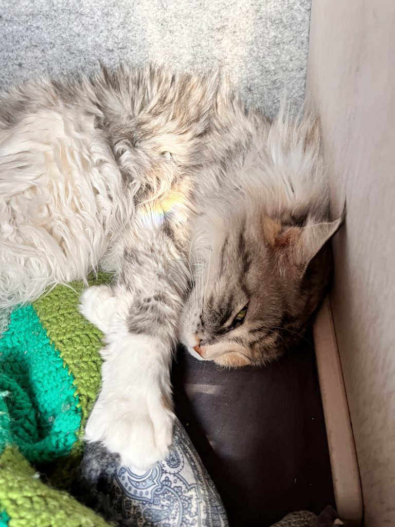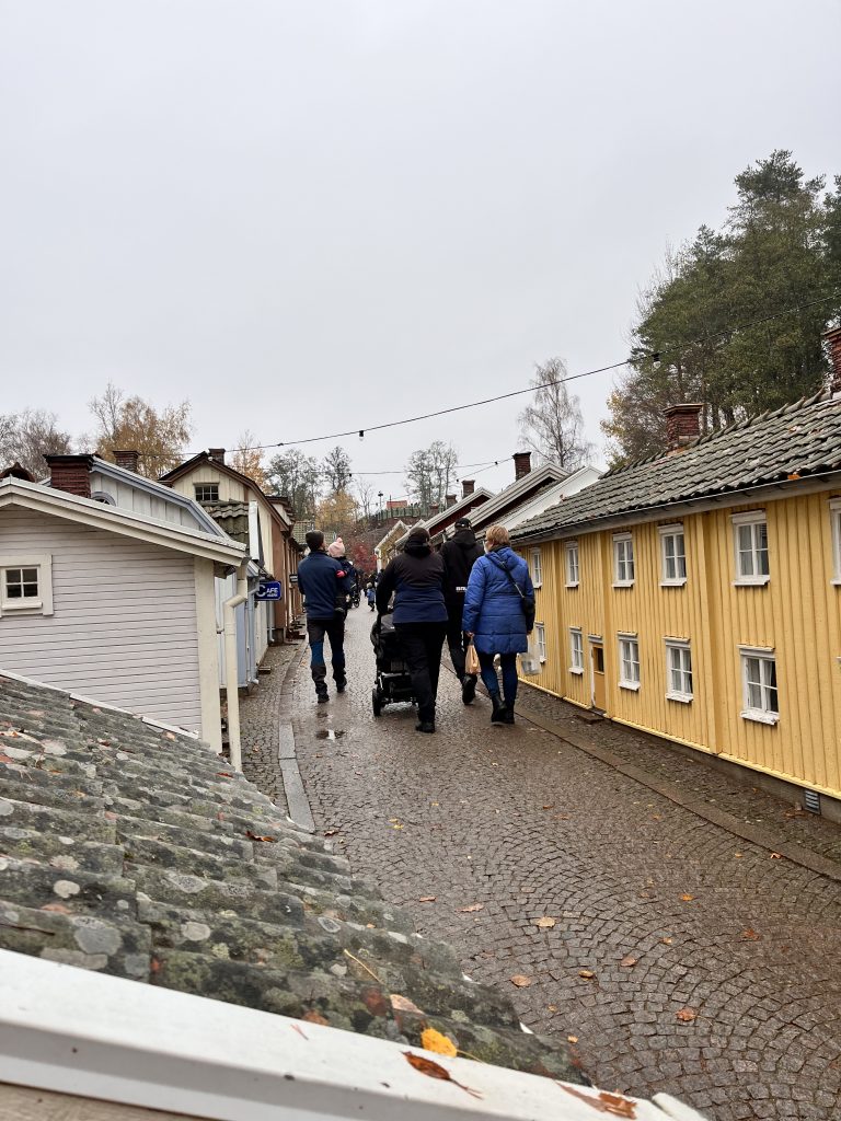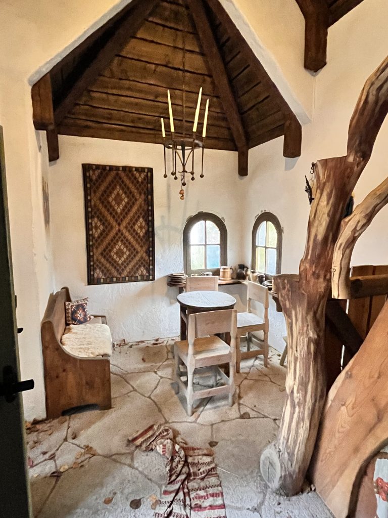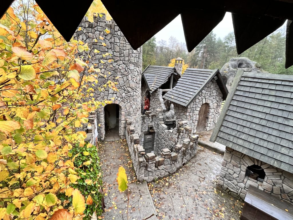 Ich beschliesse trotzdem noch den Themenpark zu besuchen, während Marco einige Zeit für sich nimmt. Im Park bin ich zwar zu gross und zu alt, jedoch macht es trotzdem Spass durch die Mattisburg zu schleichen und mich wie Ronja Räubertochter zu fühlen. Oder wie Pipi Langstrumpf in de Villa Kunterbunt. Auch die Brüder Löwenherz besuche ich und noch viele weitere Charakter aus den Geschichten von Astrid Lindgren. Am Schluss schaue ich mir noch das Pipi Langstumpf Theater an auf schwedisch. Zum Glück weiss ich wie die Geschichte geht, denn verstehen tu ich nicht viel. Da es die ganze Zeit Mal mehr Mal weniger Regnet mache ich mich danach auf den Rückweg, treffe Marco im Kaffe und danach gehen wir zusammen zurück zu Knuschel. Da wir in der Umgebung festsitzen fahren wir zum nahe gelegenen Nationalpark um unser Lager da aufzuschlagen. Wir unternehmen in einer Regenpause noch einen kurzen Spaziergang mit Dylan und Dinah bevor es auch schon wieder dunkel draussen wird.