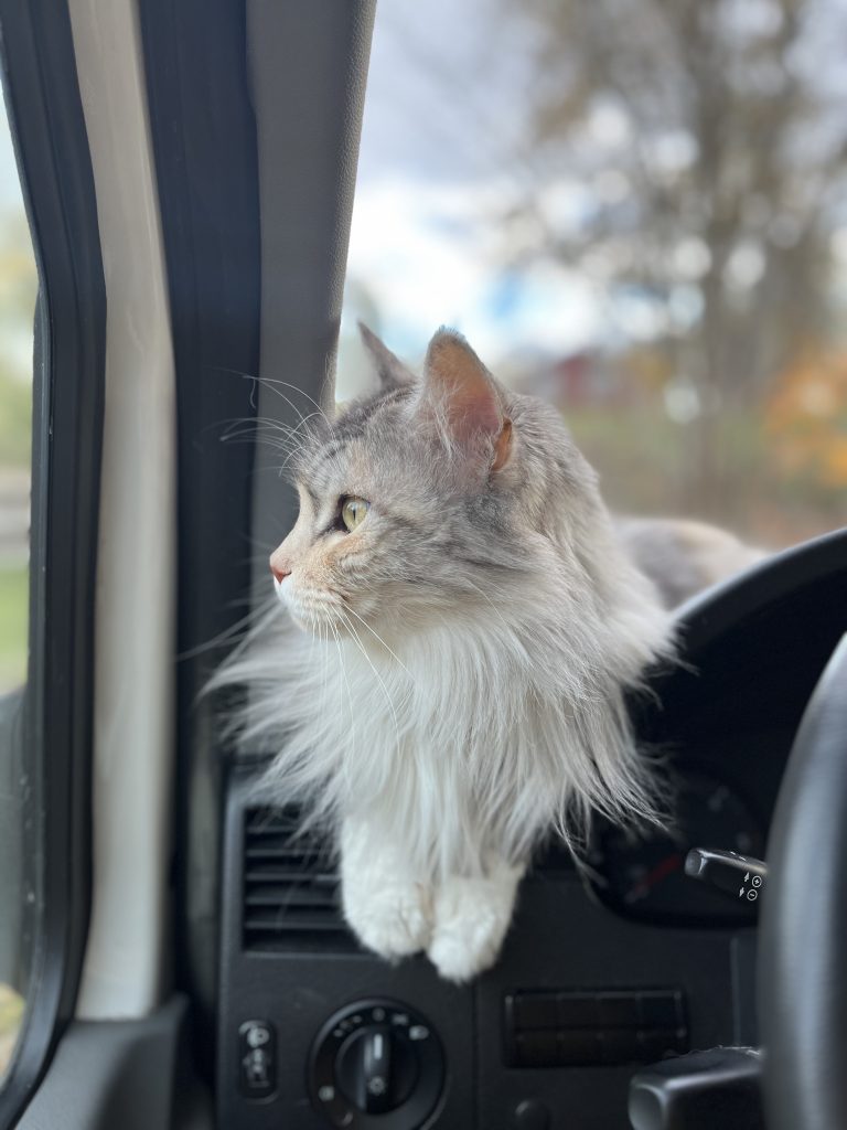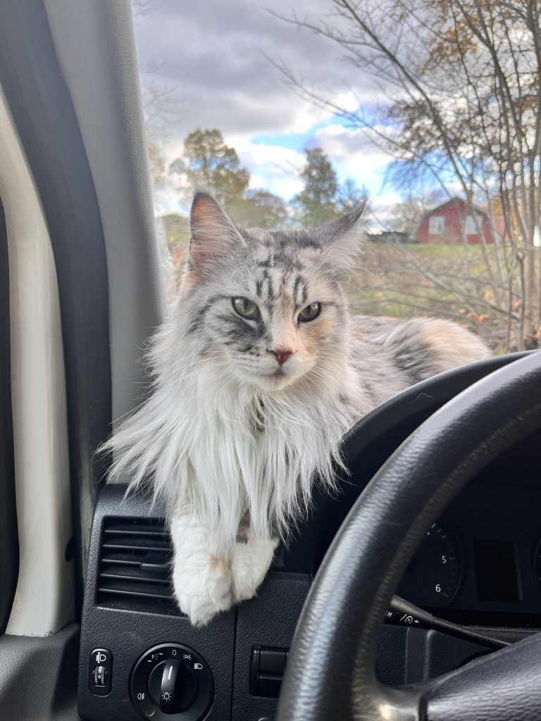 Nach einer sehr unruhigen Nacht, es hat gewittert, gehagelt und gestürmt, Marco hatte einen unruhigen Magen und ich konnte nicht schlafen ist es endlich soweit. Wir können zur Garage fahren um Knuschel flicken zu lassen. Hoffentlich funktioniert alles…. Bei der Garage angekommen werden wir herzlich begrüsst und müssen noch einen kurzen Moment warten. Wir bekommen eine Kaffe und dann geht es los. Er liest den Fehler nochmals aus und dann macht er sich an die Arbeit um uns ein Ersatzteil zu organisieren. Wir entscheiden uns für ein neue Ersatzteil, welches bis zum Nachmittag geliefert werden kann. So verlassen wir die Garage und werden, sobald das Teil angekommen ist wieder kommen. Da wir nicht all zu weit weg wollen beschliessen wir in ein Kaffe zu gehen und etwas zu arbeiten bis es soweit ist. Zwischendurch machen wir noch eine Spaziergang um einen Tapetenwechsel zu haben. Am späteren Nachmittag machen wir uns wieder auf den Weg zum Mechaniker. Dort angekommen ist auch unser Ersatzteil da und wir können es einbauen. Alles klar und es läuft einwandfrei. Endlich können wir aufatmen und unsere Reise fortsetzen. Danach machen wir uns daran nach der Zwangspause noch einige Kilometer unter die Räder zu bekommen. Auf der Fahrt treffen wir nicht nur Rehe, Wildschweine und Eichhörnchen an sondern sehen unseren ersten Elch in freier Wildbahn. Leider schaffen wir es nicht ihn zu fotografieren. Aber die Erinnerung bleibt. Wuhuuu!!!! Wir stellen uns danach auf einen Waldparkplatz und verbringen einen gemütlichen Abend.