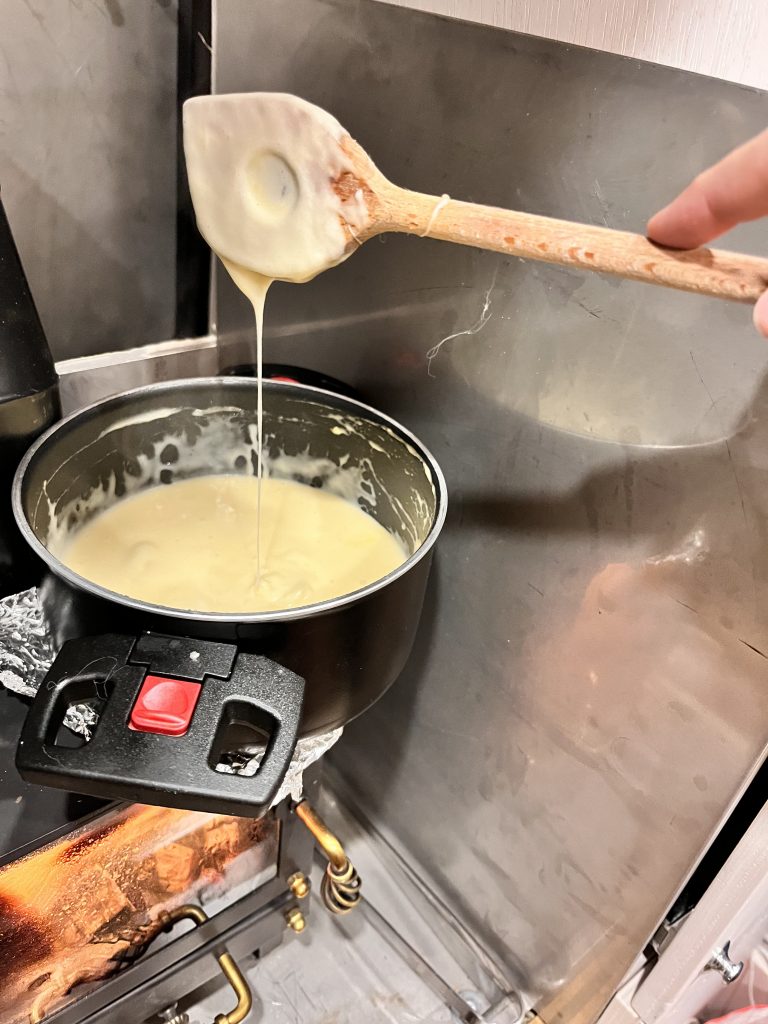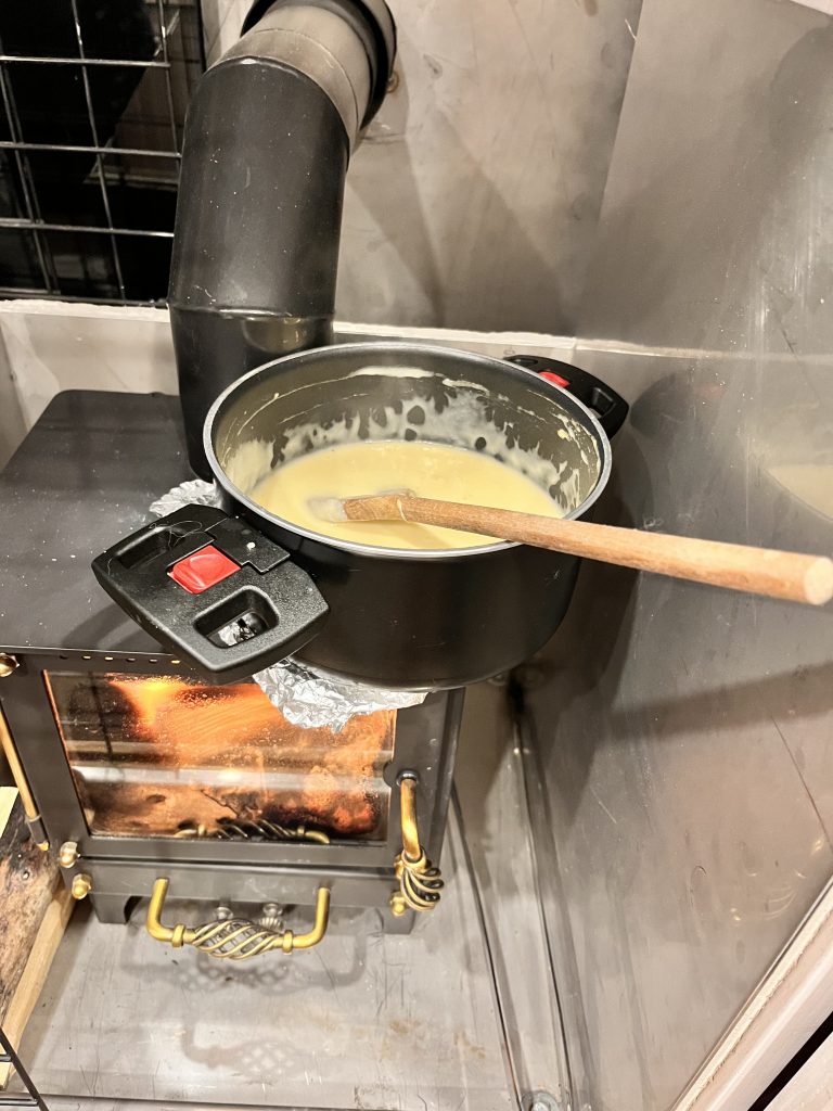 Am Freitag Morgen wird erstmals Knuschel aufgeräumt und geputzt. Dies nimmt einiges an Zeit in Anspruch. Denn wenn unsere Wohnung auch nur 6 Quadratmeter gross ist, gibt es immer was zu putzen, aufzuräumen oder zu ordnen. Marco joggt noch eine runde und duscht wieder einmal kalt. Am Nachmittag machen wir uns wieder auf den Weg. Die Fahrt verläuft ereignislos. Wir treffen nur einige Rehe an. Wir sind erstaunt wie viele wir hier sehen und wie nahe sie der Strasse kommen auch mitten am Tag. Am Abend machen wir Fondue, welches wir hier oben gefunden haben. Wo es überall Emmi zu kaufen gibt?!