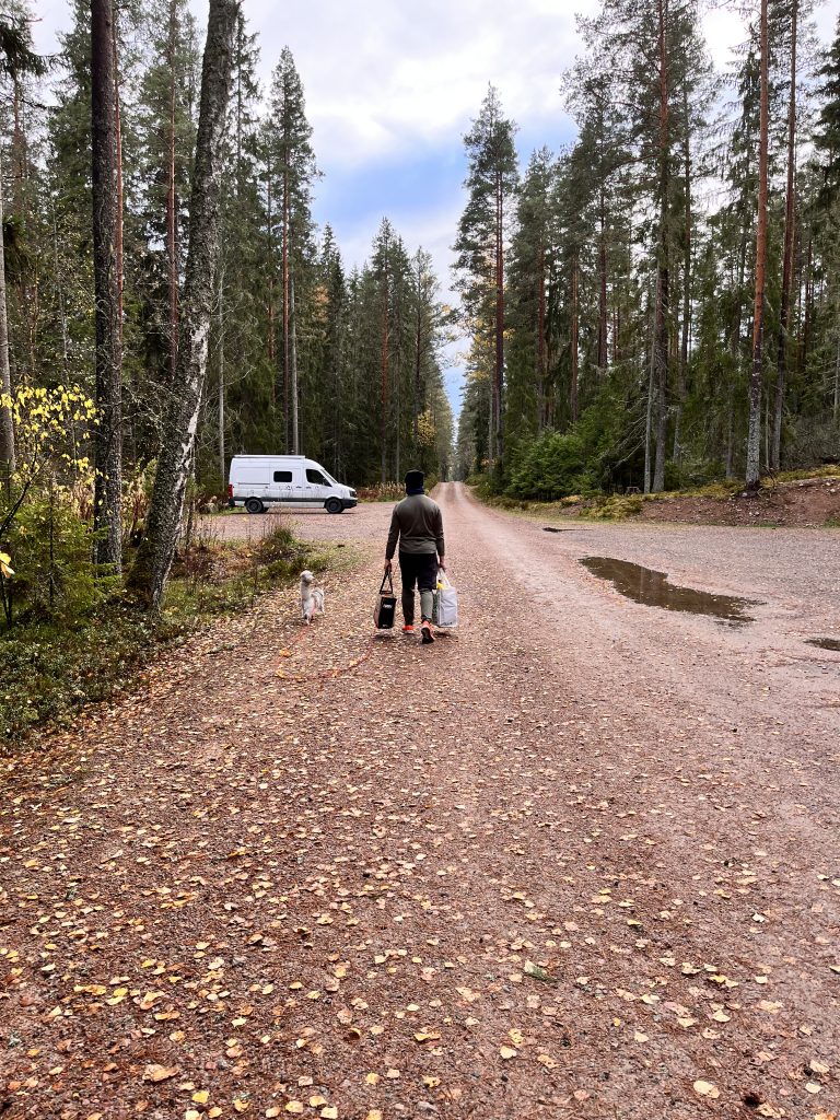 Am Donnerstag machen wir uns auch schon wieder auf den Weg. Unser Ziel ist noch ein Baumarkt aufzusuchen. Denn trotz Holzofen haben wir immer noch ein Feuchtigkeitsproblem. Wir wollen Entfeuchter kaufen. Auch legen wir uns noch eine Fenster – Wasser – Sauger zu, sodass wir das Konsenswasser absaugen können und nicht mit einem Lappen – der dann wieder im Bus trocknet – das Wasser abzuwischen. Ob diese Massnahmen reichen, werden wir erst in einigen Tagen erfahren. Aber wir hoffen es sehr. Nach einem weiteren kleine Stop um kleines Anzündholz zu kaufen fahren wir Weiter. Wir legen einen Zwischenstop an einem Badesee ein und geniessen die Sonnenstrahlen die heute durch die Wolkendecke brechen. Marco lässt die Drohne steigen und Dinah posiert für schönen Fotos. Seht selbst….