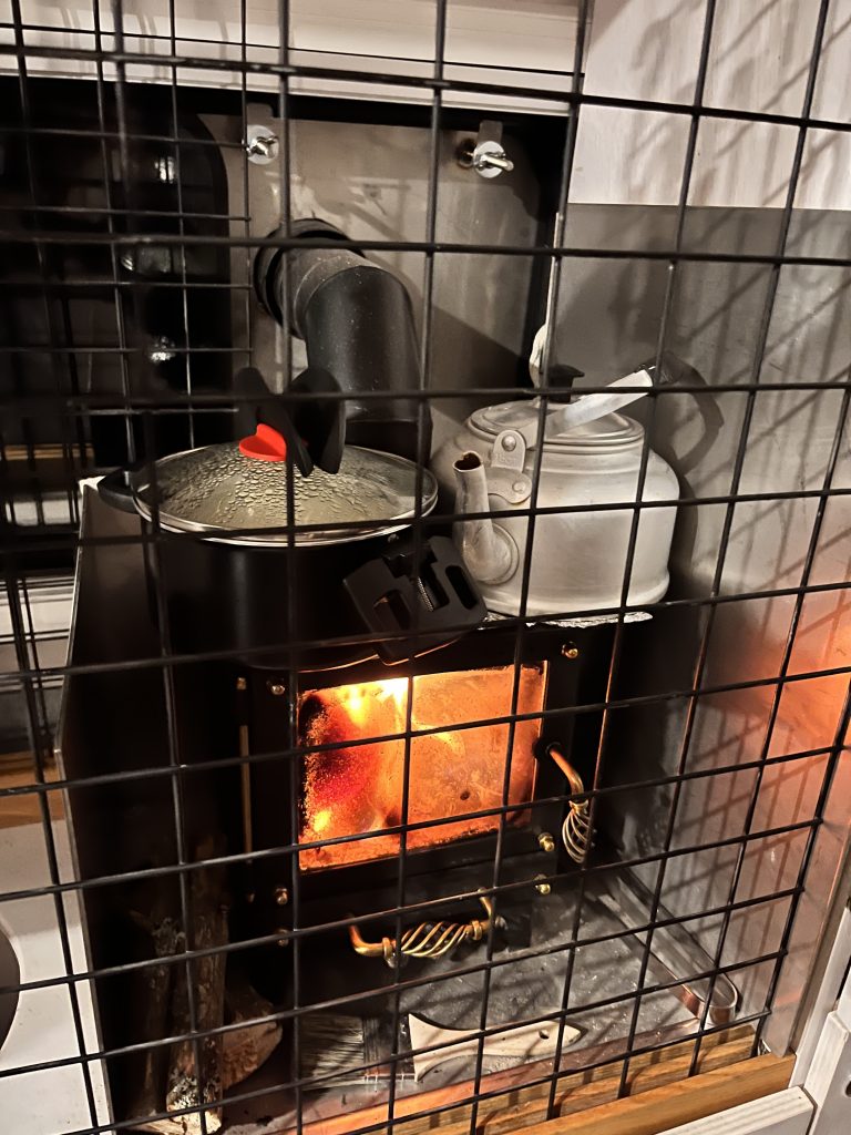 Wir klingen unseren Abend mit Duschen aus. Da es in der Zwischenzeit zu kalt geworden ist einfach irgendwo in den See zu springen, brauchen wir die Aussendusche von Knuschel. Zum Glück haben wir eine Boiler und heisses Wasser, sonst wäre es definitiv zu kalt. Frisch geduscht, setzen wir uns vors Feuer. Danach machen wir noch den Abwasch und es gibt zum Dessert Schoggibanane aus dem Ofen.