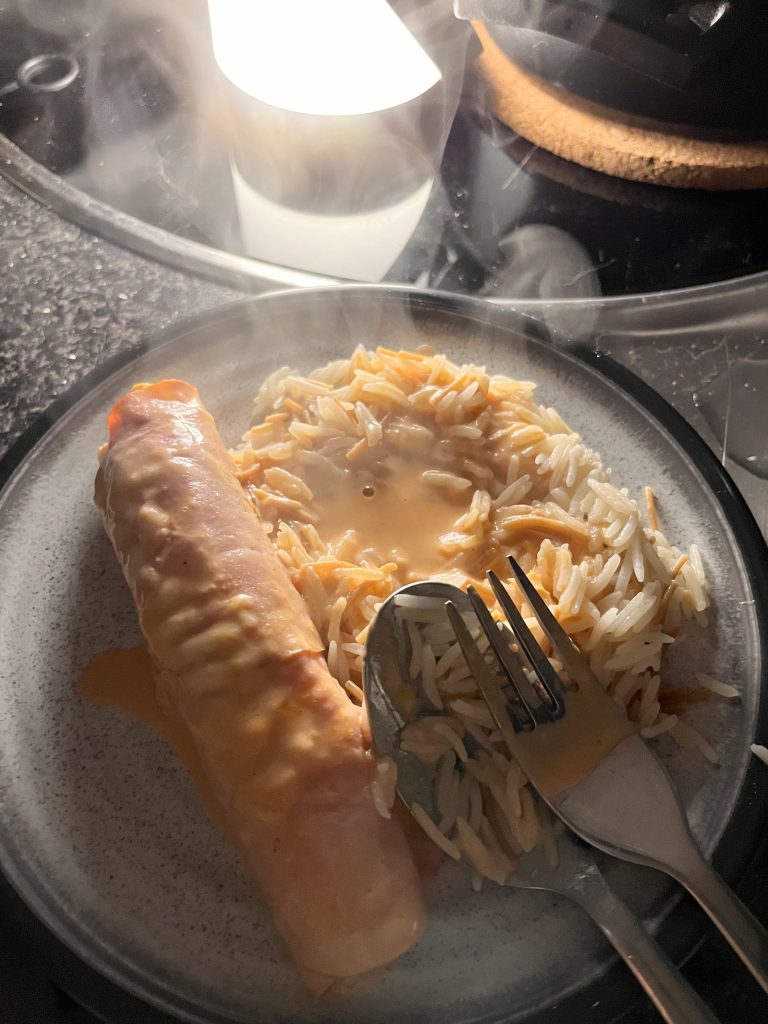 Nach unserer Pause geht es auch schon wieder weiter, bis wir einen schönen Platz gefunden haben. Nach einiger Zeit, die wir mit lesen verbracht haben mache ich mich an die Vorbereitung des Abendessens. Danach telefonieren wir noch mit Marcos Familie und richten Geburtstagswünsche aus, bevor sich auch dieser Tag dem Ende zuneigt.