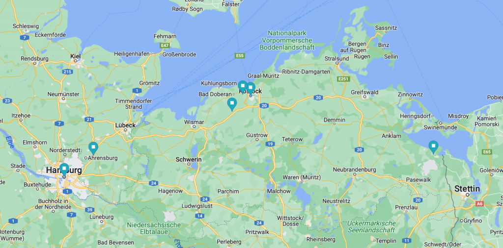 Am nächsten Tag machten wir uns nun endlich auf den Weg nach Rostock. Auf einem kleine Stellplatz etwas ausserhalb fanden wir eine gute Gelegenheit zum bleiben. Wir wurden vom Besitzer noch darauf hingewiesen, dass im Moment das 9 Euro Ticket aktuell ist und wir mit dem günstiger in die Stadt kommen als mit Einzelfahrten.