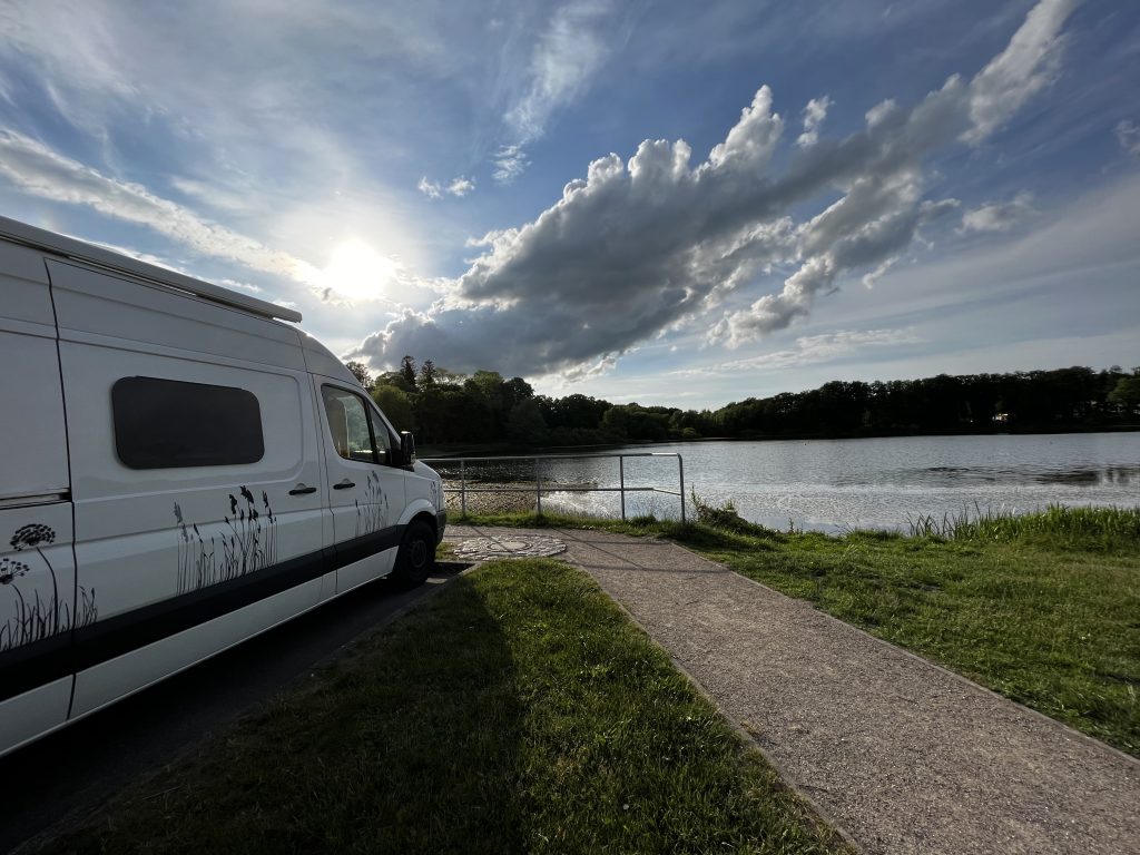 Da unser Plan nach Rostock zu fahren sowieso gescheitert war, beschlossen wir noch einen Zwischenstop in Satow einzulegen. Dieses kleine Städtchen an einem grossen Weiher, bzw. kleinen See ist sehr hübsch und friedlich. Wir verbrachten einen gemütlichen Tag und kochten uns ein leckeres Abendessen, welches wir am Wasser assen. Dann ging es für uns früh ins Bett, da es gestern wie gesagt spät geworden ist.