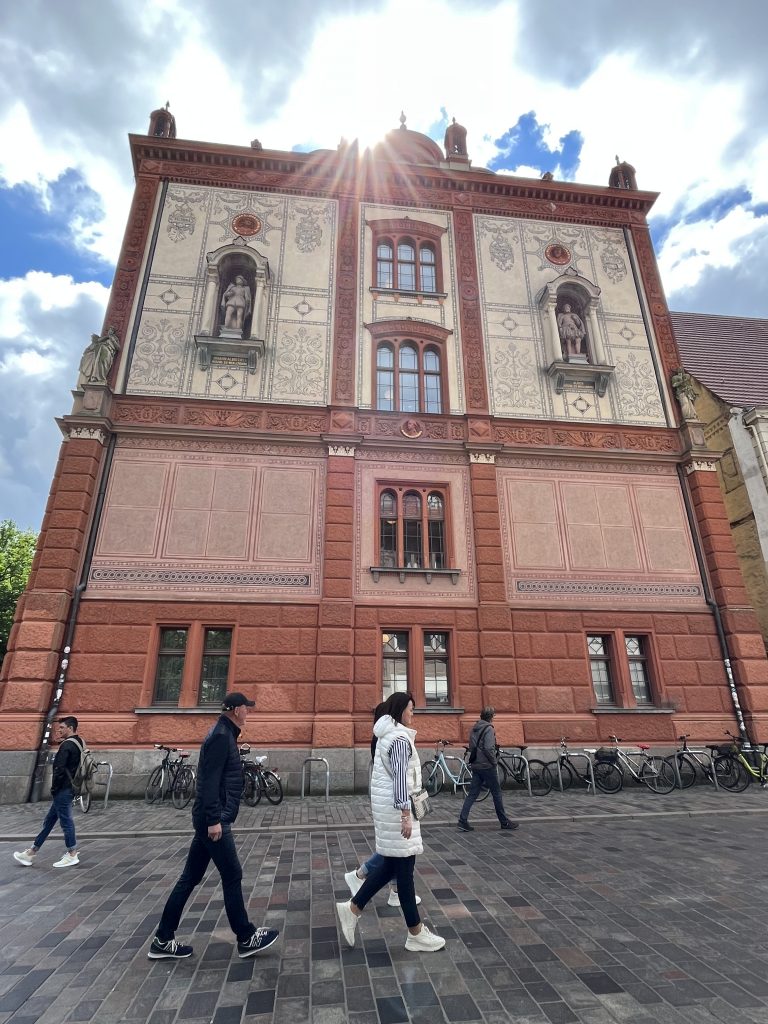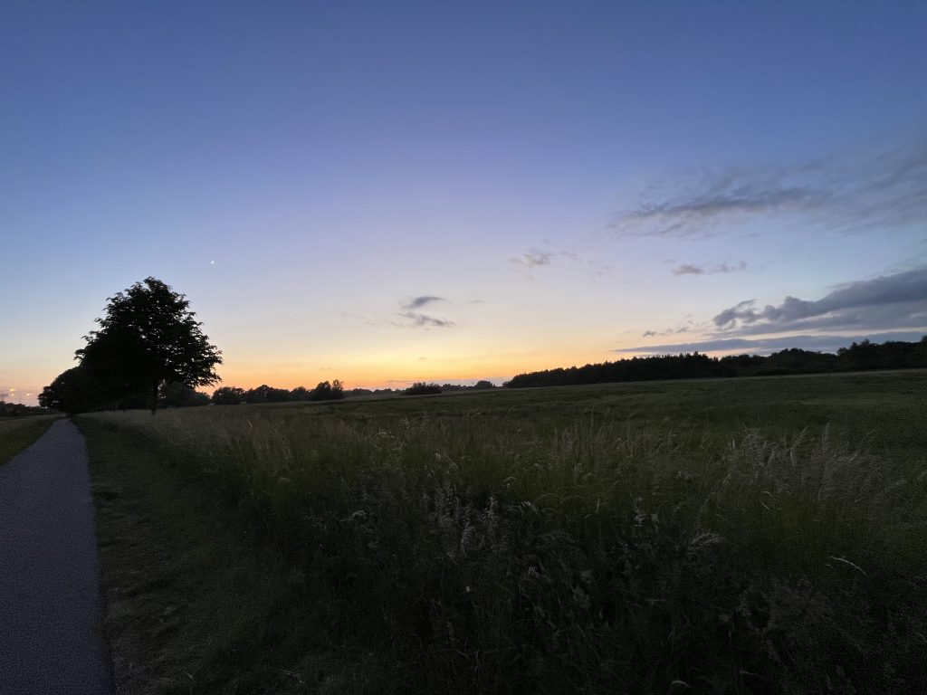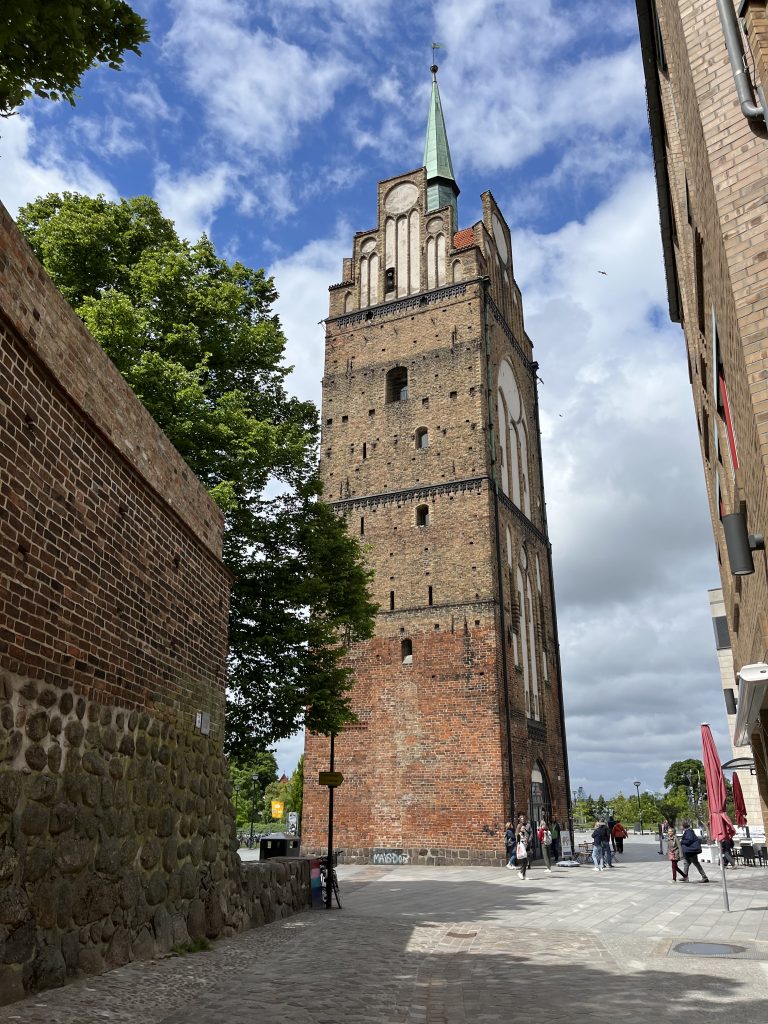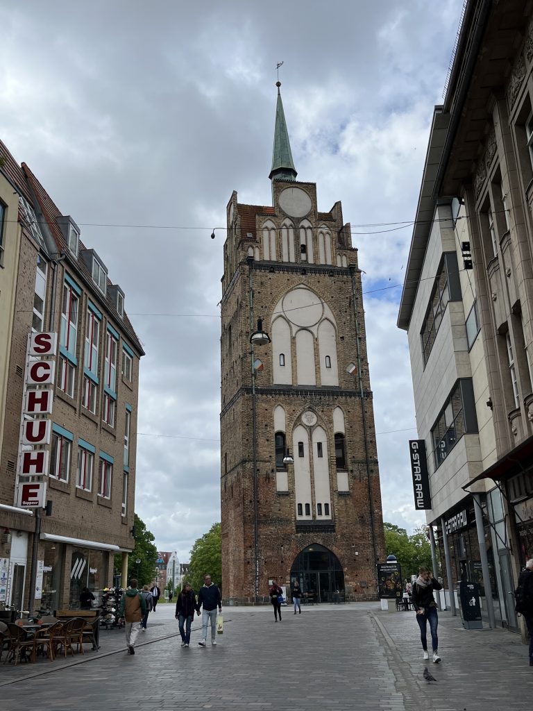 Gestärkt machten wir uns am nächsten Tag auf den Weg nach Rostock. Wir erkundete zu fuss die Stadt, liefen der alten Stadtmauer entlang, kauften Postkarten, assen Eis (welches nicht sehr gut war, leider), fanden meine Lieblingsunterwäscheladen (wo ich natürlich „güngerle“ musste) und genossen den sonnigen aber nicht zu warmen Tag. Eigentlich wollten wir ja im Knuschel essen, doch uns zog es in ein Steak-Restaurant. Und es war superlecker, sodass wir beide uns evt. ein bisschen überessen haben. Da wir aber nun viel zu spät waren um mit dem ÖV zu unserem Camping zu fahren, mussten wir für die letzten 4 km den Fusszug nehmen. Also liefen wir nach hause und der Sonnenuntergang machte die vier Kilometer etwas erträglicher. Auch sahen wir unterwegs ein Reh und einen Dachs. Am nächsten Tag ging es nochmals in die Stadt.