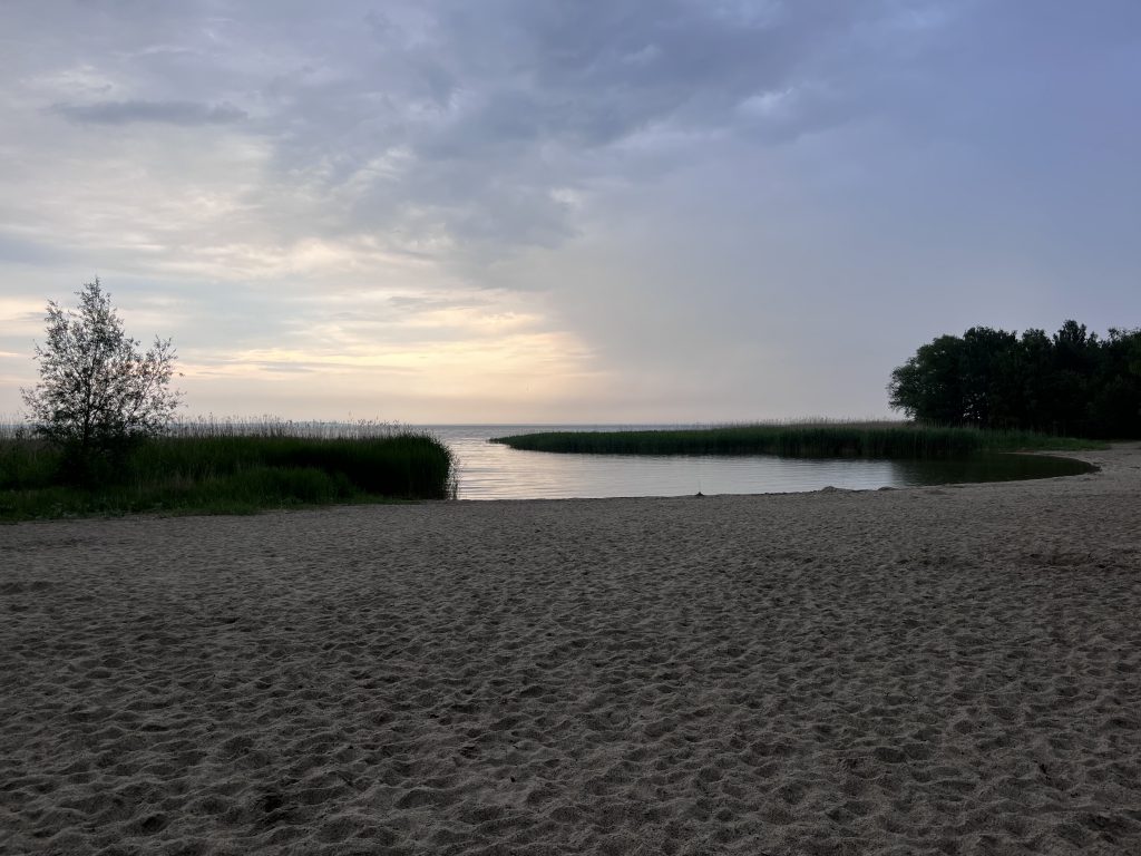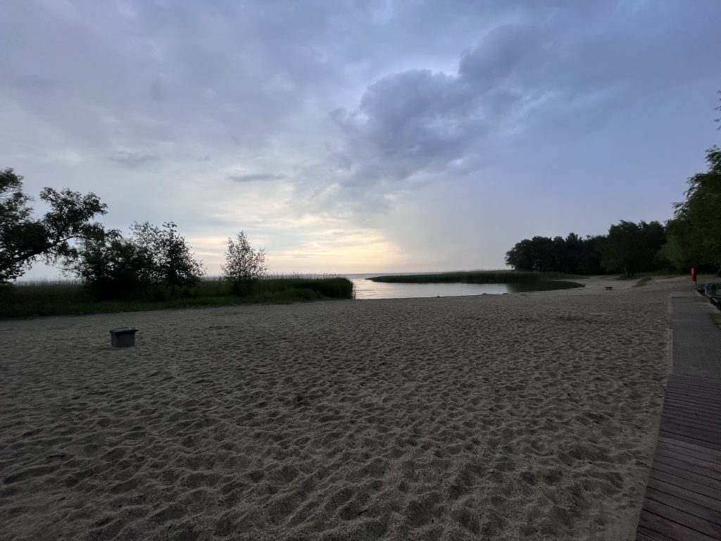 Nachdem wir alles hatten, machten wir uns auf den Weg nach Bellin am Stettiger Haff. Der Stetiger Haff oder auch Zalew Szczecinski ist ein inneres Küstengewässer. Etwas abgelegen vom Dorf ist ein Waldparkplatz der zu einem Sandstrand mit einer kleine Bar führt. Es ist wunderbar ruhig und am Strand wunderschön.