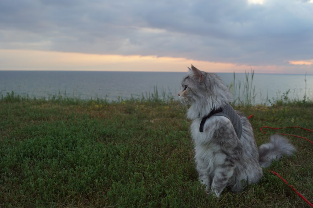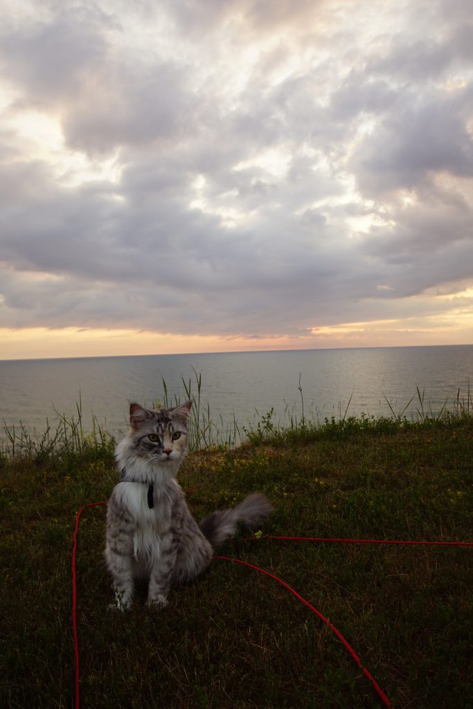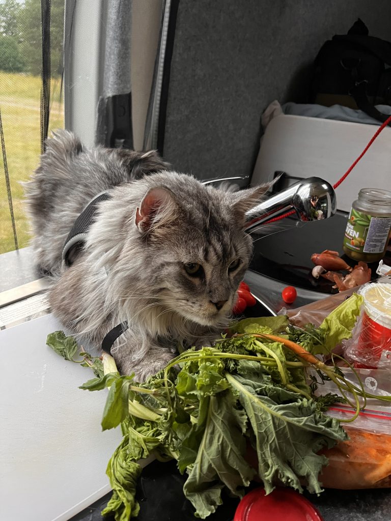 Da zurzeit noch viele Menschen bei der Höhle sind beschliessen wir unsere Fotos erst am Sonntag Morgen zu machen und luden die Katzen ein, sodass wir noch eine kleine Runde im Nationalpark laufen gehen können. Dinah ist in der Zwischenzeit schon ziemlich gut im Laufen an der Leine. Dylan findet das Tragen besser und möchte nicht aussteigen.