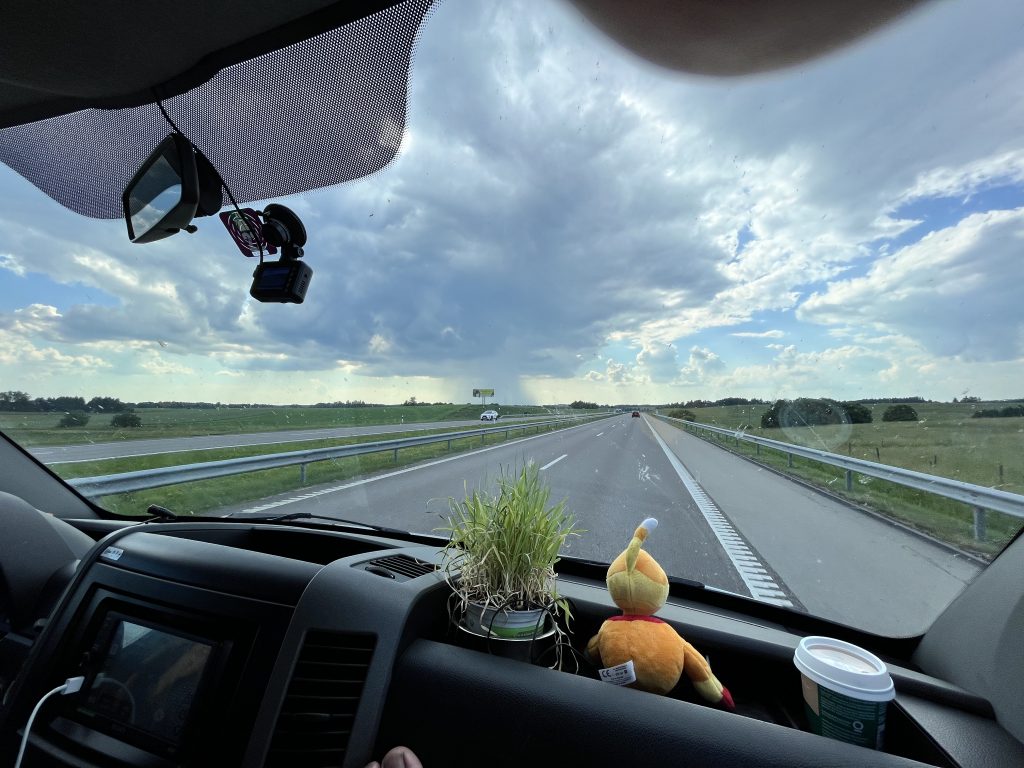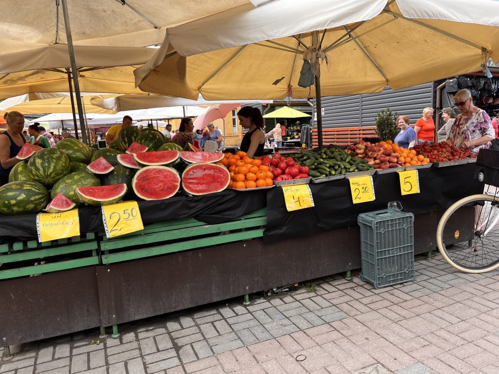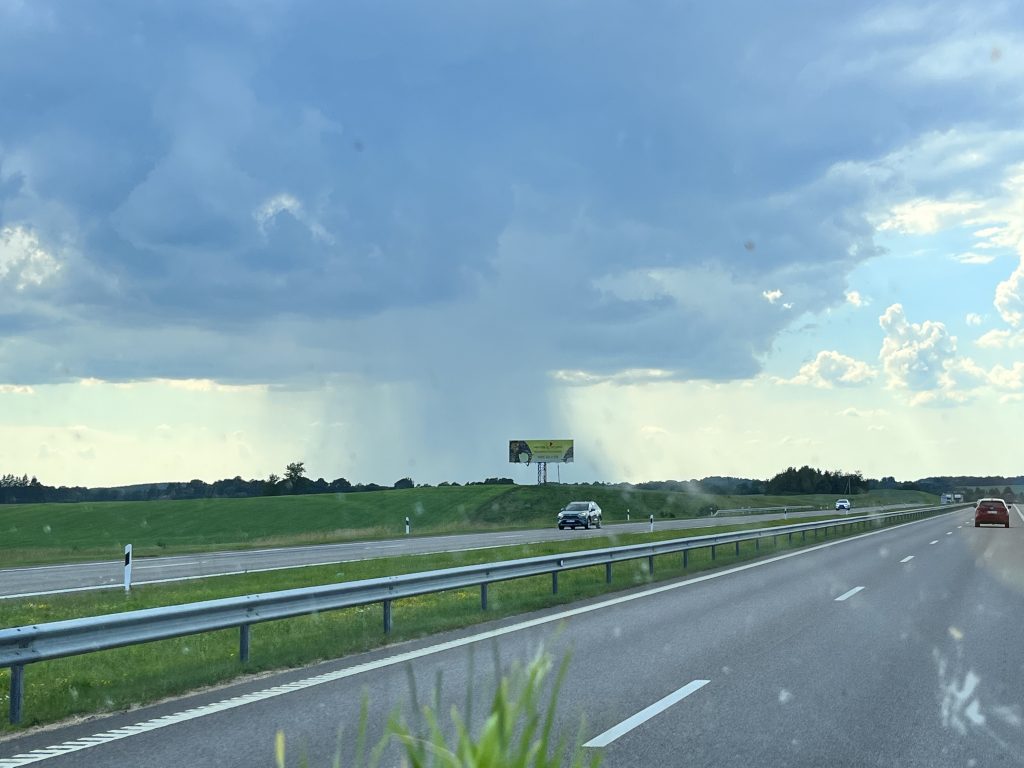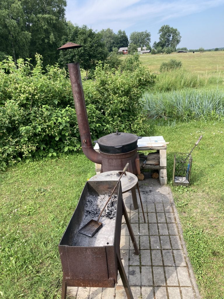 Gemütlich starten wir in die neue Woche. Wir sind immer noch in Litauen bei Ruta und Česlovo. Am Morgen gehen wir beide gemütlich unseren Aktivitäten nach, bevor wir uns dann auf den Weg zum Einkaufen machen. Denn wir haben unsere Gastgeber zum Abendessen eingeladen und brauchen noch Fleisch für unser geplantes Mahl. Auf der Suche nach einem Laden, gehen wir ins nicht allzu weit entfernte Dorf. Da es da aber leider nur gefrorenes Schweinefleisch zu kaufen gibt, entscheiden wir uns ins etwas grössere Dorf zu laufen um in diesem Laden dort nach Fleisch zu suchen. Da wir unser Bus eigentlich nicht bewegen möchten, beschliessen wir die 5 km zu Fuss zu gehen. So haben wir unsere heutige Sporteinheit auch schon absolviert. Der Weg an der Hauptstrasse entlang und in der Sonne ist ziemlich anstrengend und heiss. Im Dorf angekommen betreten wir den ersten Laden. Hier findet man eigentlich nur kleine „Tante Emma Läden“ welche von allem etwas aber eigentlich Nichts haben. Auch in diesem Laden werden wir nicht fündig. Daher beschliessen wir auch noch den zweiten Laden aufzusuchen. Dort angekommen finden wir zwar frisches Fleisch, welches nicht gefroren ist, aber Rindfleisch haben sie trotzdem nicht. Daher und weil es schon ziemlich spät war, beschlossen wir es mit Schweinehals zu versuchen. So machten wir uns voll gepackt auf den Rückweg.