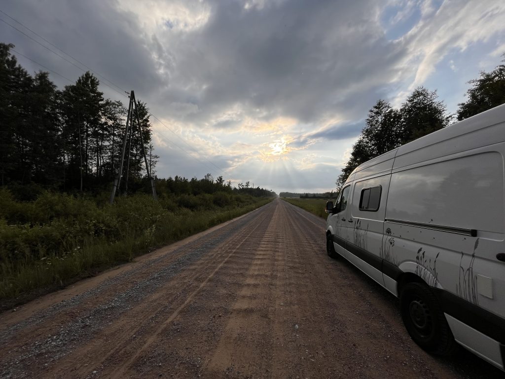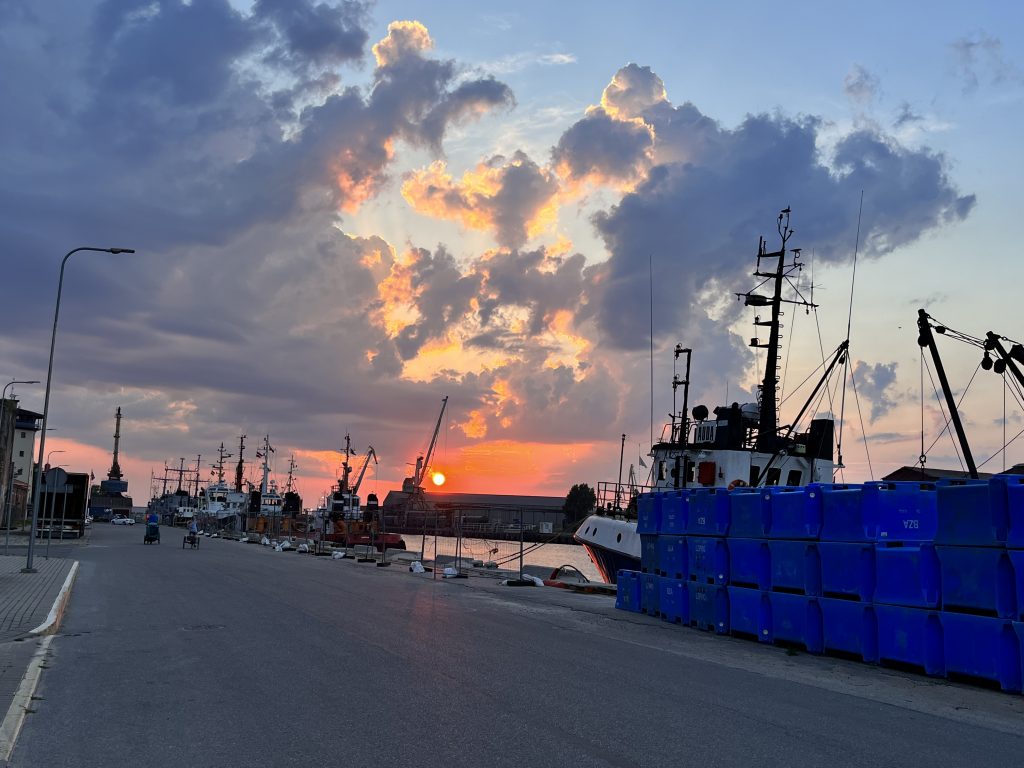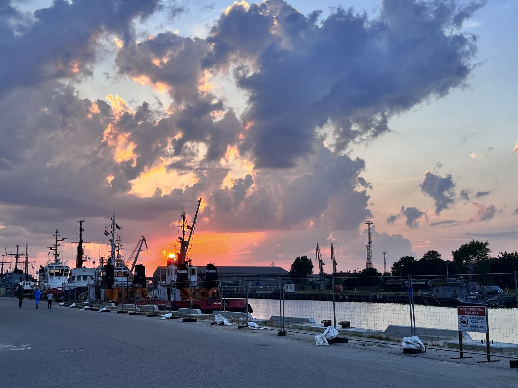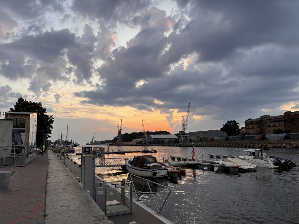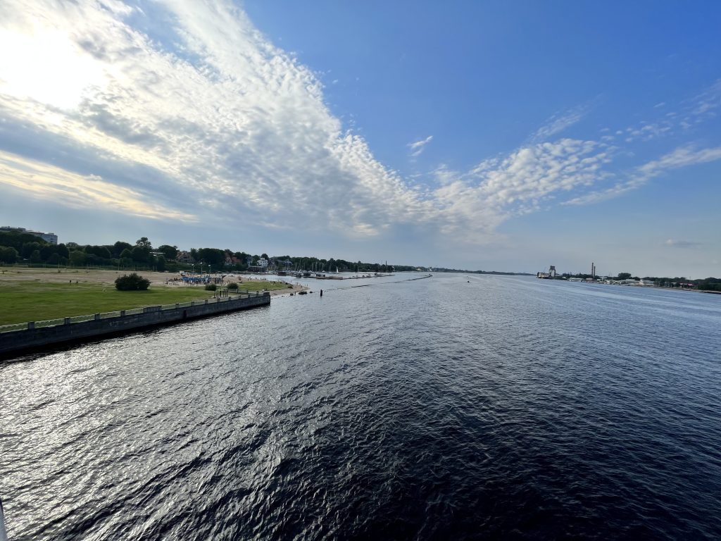 Heute müssen wir diesen idyllischen Platz leider verlassen. So stehen wir auf, frühstücken, machen unsere Sporteinheit und kühlen uns danach ein letztes Mal im See ab. Duschen, alles zum Aufbruch vorbereiten und uns verabschieden. Dann machen wir uns auch schon auf den Weg nach Lettland. Unser Ziel ist Liepāja. Dort stellen wir Knuschel ab und schlendern der Hafenpromenade entlang und geniessen dabei den Sonnenuntergang. Die sind da einfach unglaublich schön und beeindruckend. Wir beschliessen noch etwas trinken zu gehen und machen uns danach noch einen gemütlichen Abend.