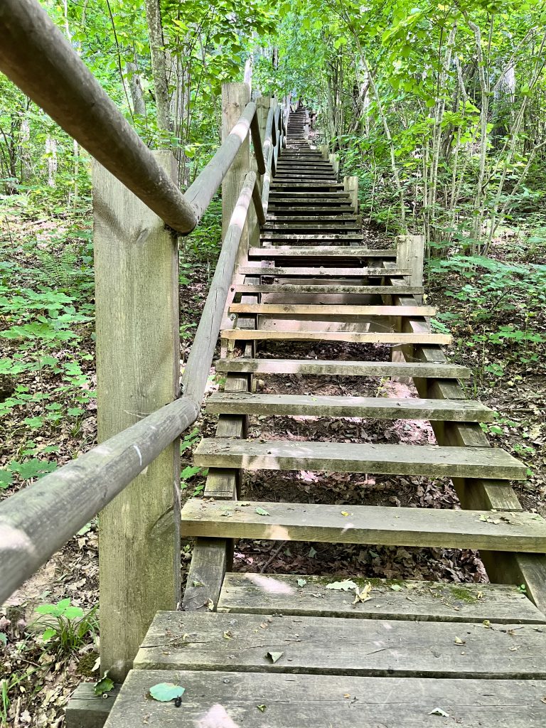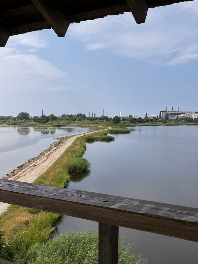 Auch stellen wir unseren Rucksack zurück, so dass wir mit leichtem Gepäck noch zum Steg laufen können, der in den See hinein führt. Da es vorher mal getröpfelt hat, ist es im Moment sehr schwül und drückend. Die Aussicht vom Turm aus ist wunderschön. Nach einiger Zeit machen wir uns auf den Rückweg.