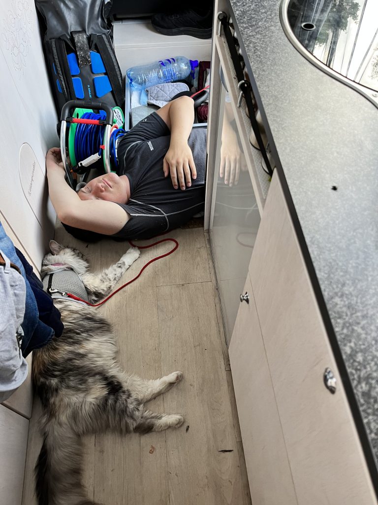 Wenn wir noch Platz im Kühlschrank gehabt hätten, hätten wir wahrscheinlich sehr viel eingekauft. Jedoch ist unser Kühlschrank noch ziemlich voll, daher lassen wir es schweren Herzens sein. Gegen Mittag setzen wir uns in ein kleines Kaffee, sodass Marco noch arbeiten kann und ich widme mich einem meiner vielen Projekte. Danach zieht es uns zurück zu Knuschel. Denn wir wollen überprüfen ob noch alles o.k. ist.